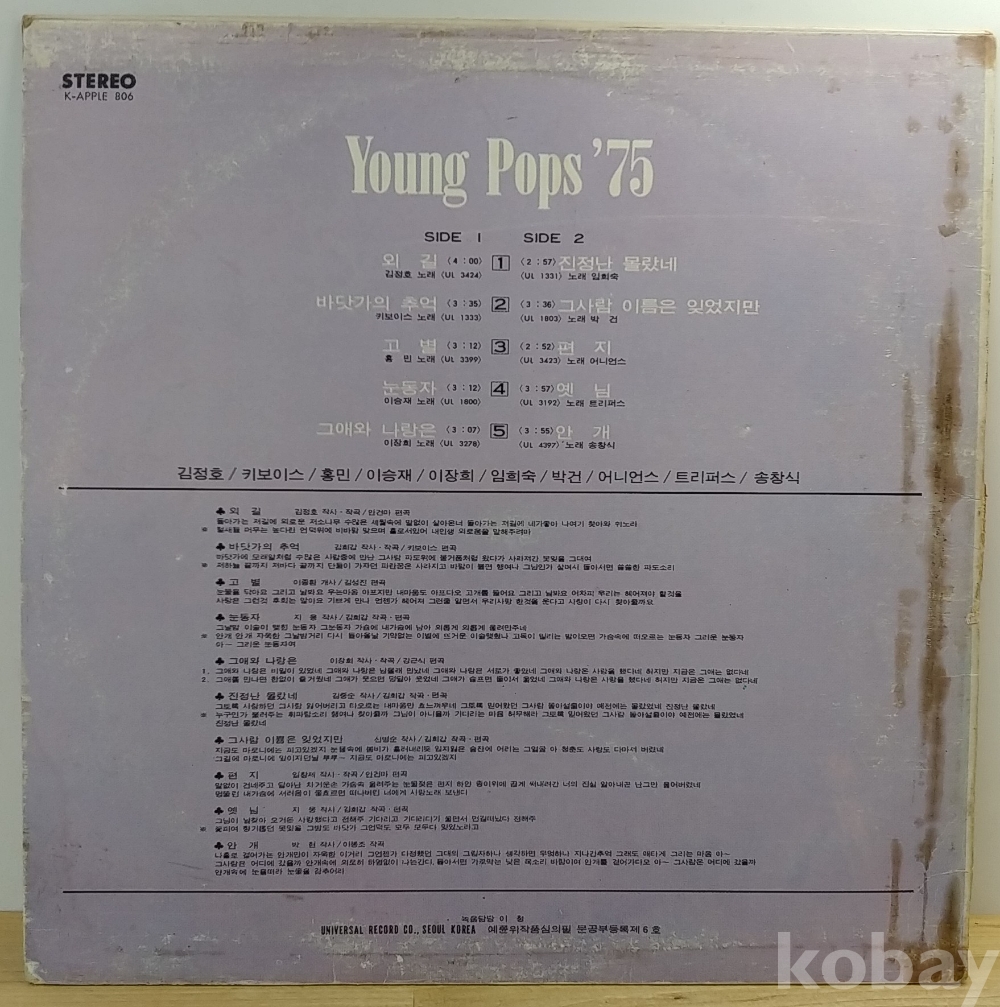YOUNG POPS 영팝스75 - 김정호 / 이장희 (외길 / 그애와 나랑은) 1975년 유니버샬레코드 초반