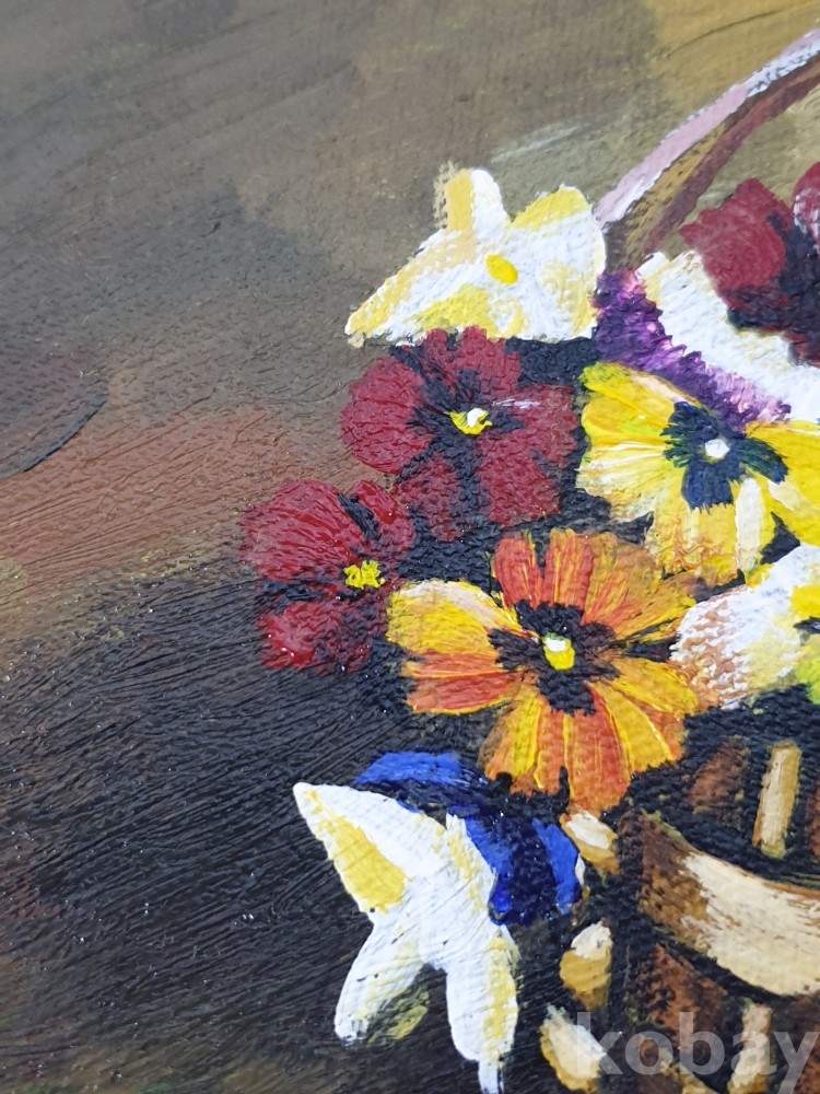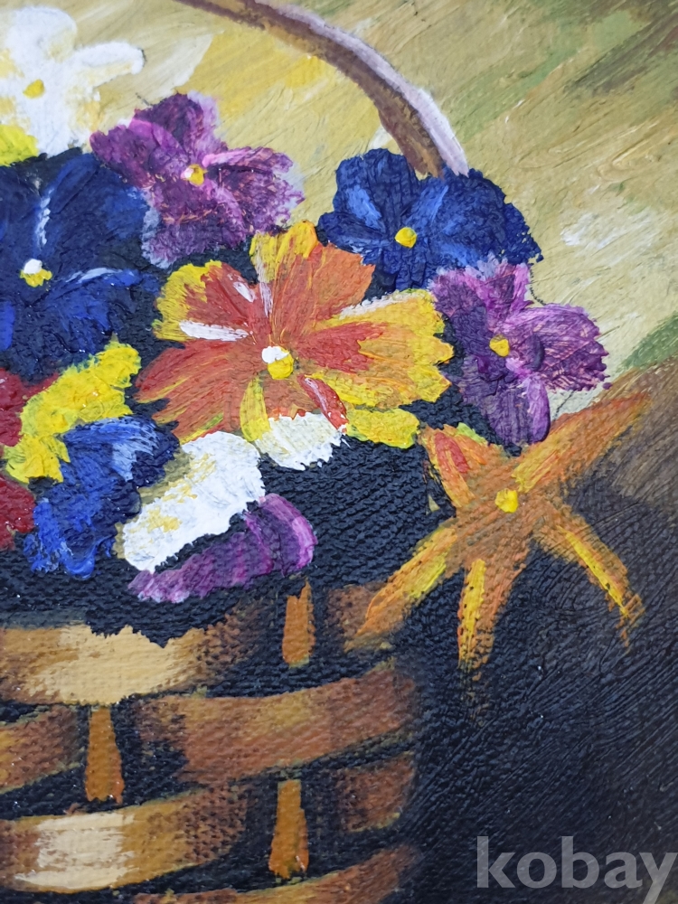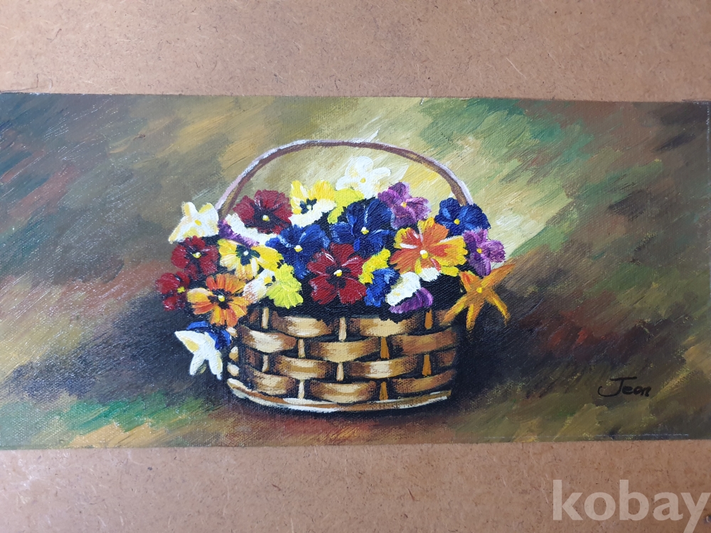 {천원경매} Y-12.2598 유화 꽃바구니 그림 (41*25, 그림사이즈 31*15, 묶음배송불가)