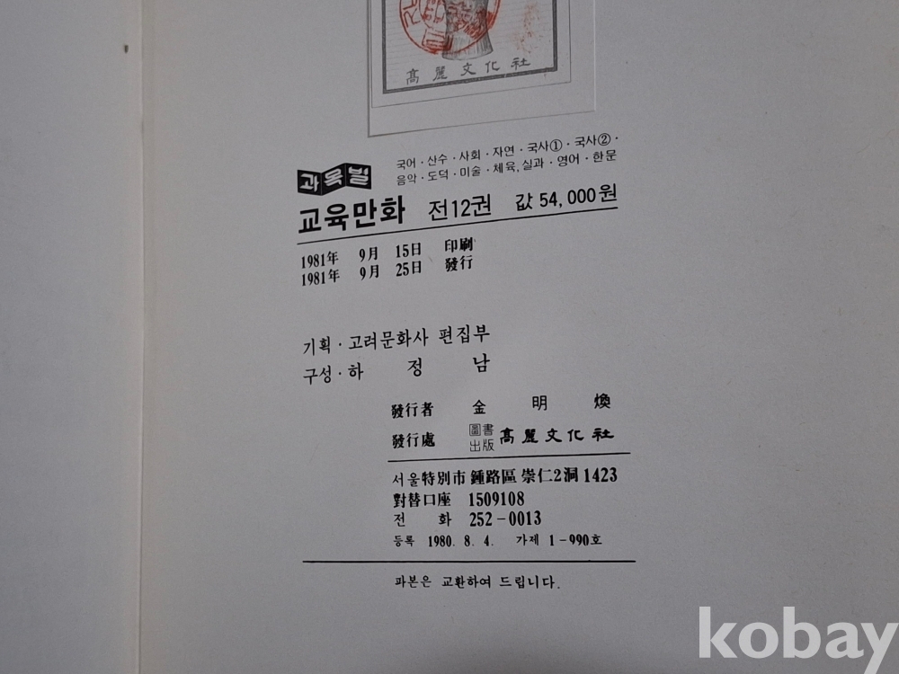 81년 초판 과목별 교육만화로