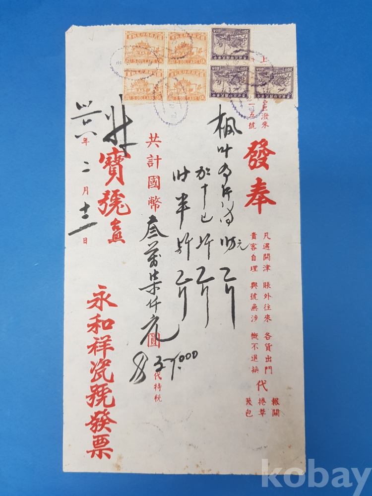 **** 중국 1940년대 5월,30원 수입인지 7매첩부 회계문서