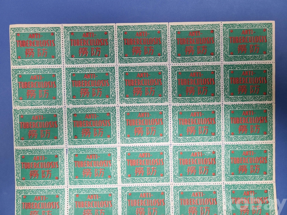 일제강점기 ANTI-TUBERCULOSIS 房勞(방로) 씰 [결핵예방 씰] 50매(5X10) 전지,MNH