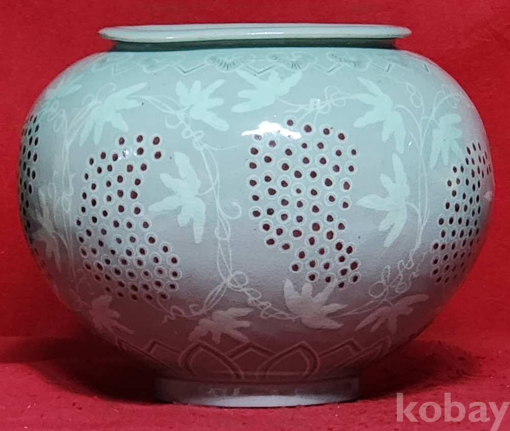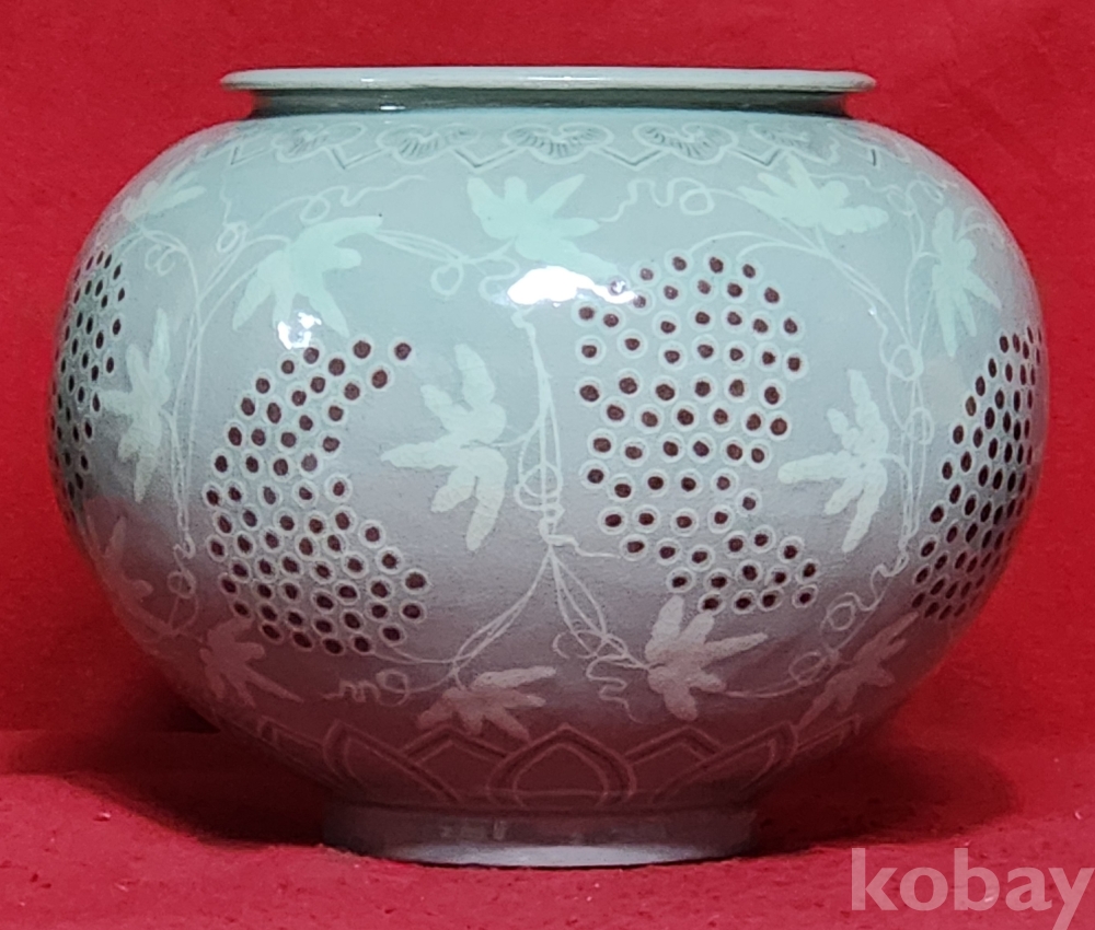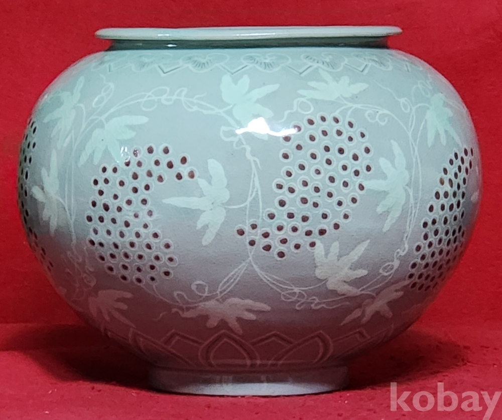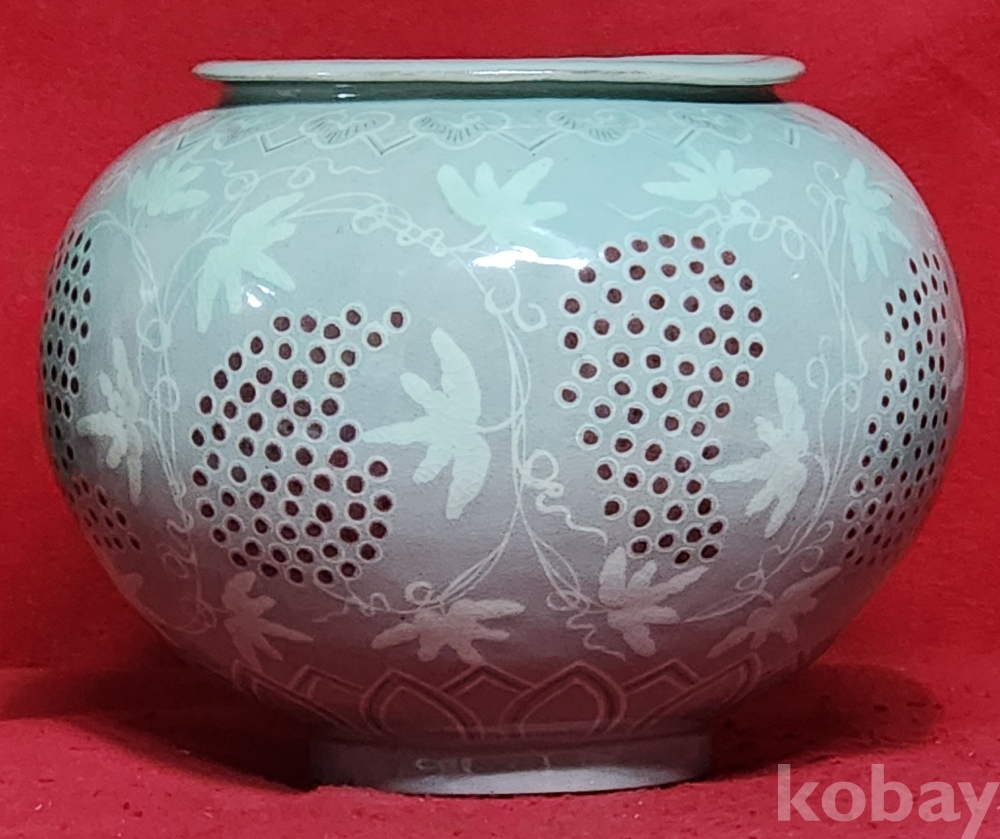 인간문화재 도암 지순탁 선생님의 흑백상감 진사채 포도문 호 입니다