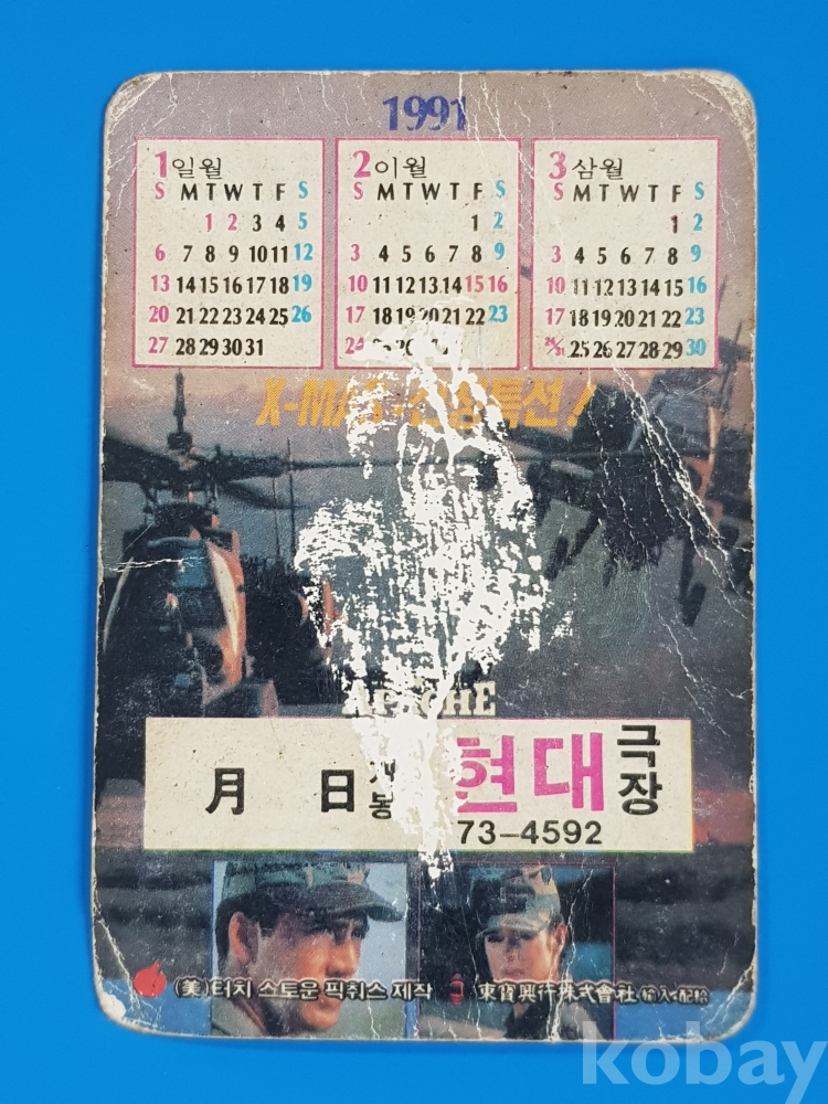 **** 영화카드*아팟치/니콜라스 케이지,토미 리 존스, 숀 영 주연/1991년 현대극장/앞뒷면 상태 안좋음
