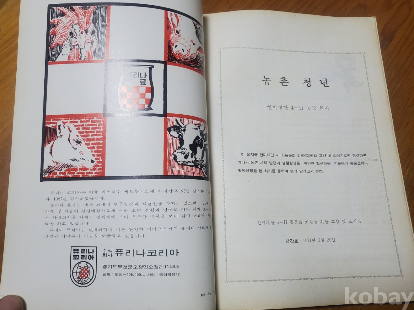 1. 농촌 청년 창간호, 한미재단 4-H동문회, 1971년, 94쪽, 상태 상, 사진 참조