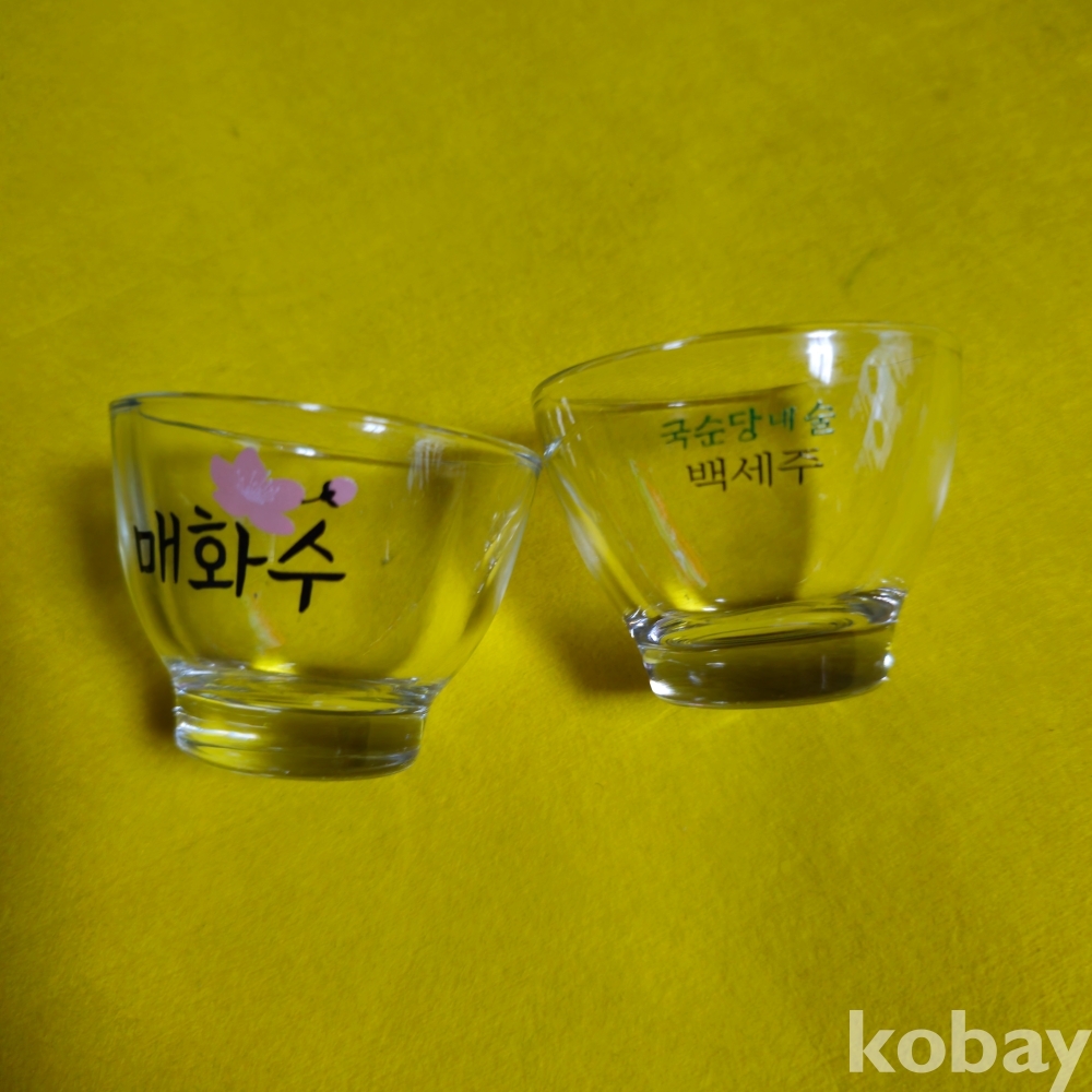(((근현대사자료/술자료))) 오래전 매화수/국순당네술 백세주 술잔 2종