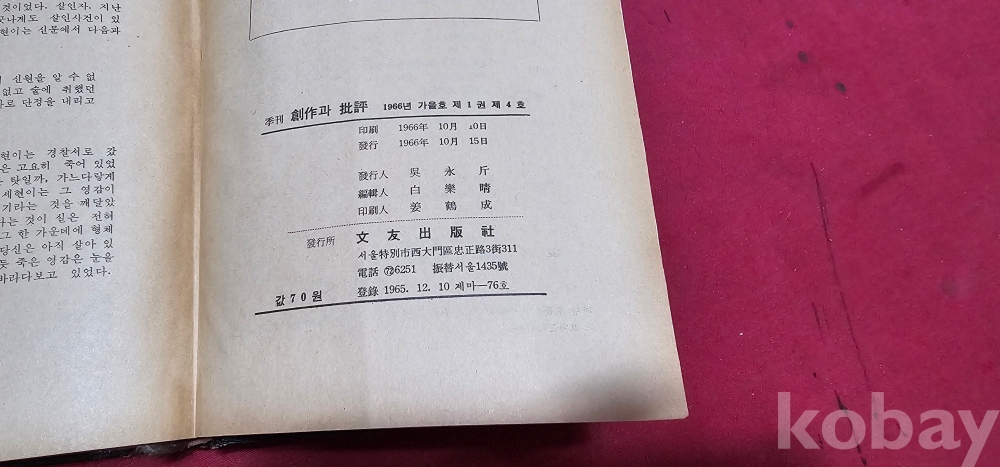 창작과 비평 창간호[1호~34호] 전권중 [제5호[1970년] 1책 결 총 8책