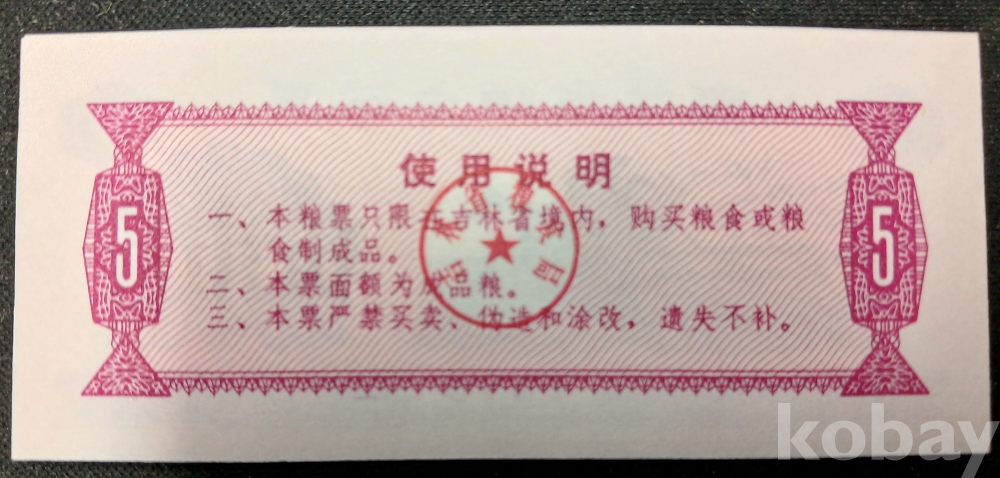 吉林省地方糧票 伍市斤(길림성 지방양표 5시근)-1975년
