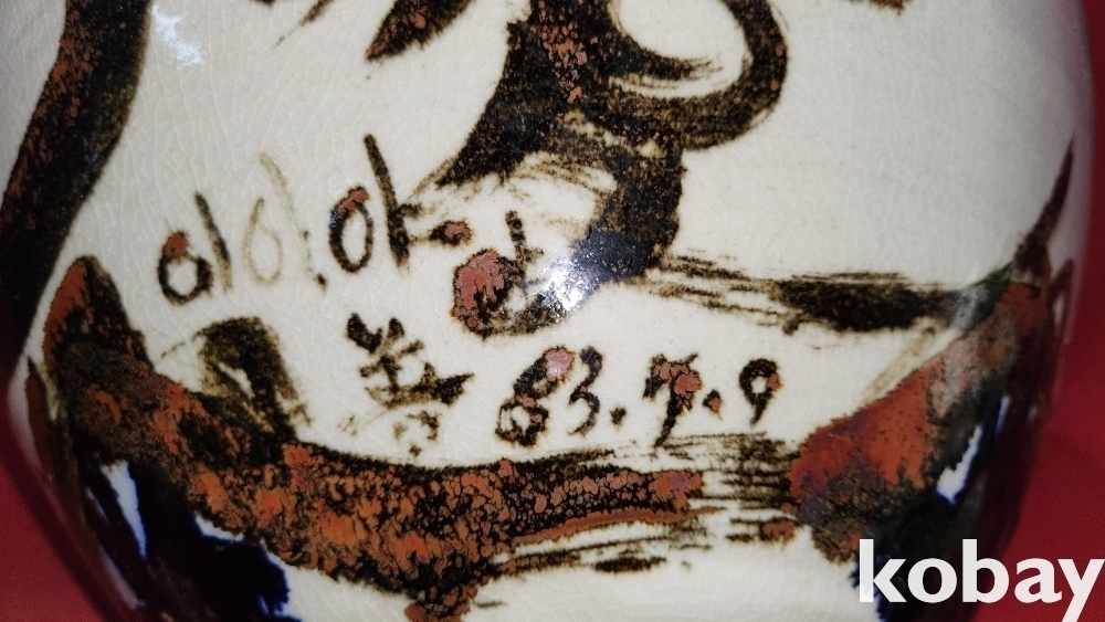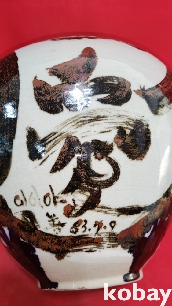 유명 도예가 鮮 1983년 作 철화 문자문양 항입니다,