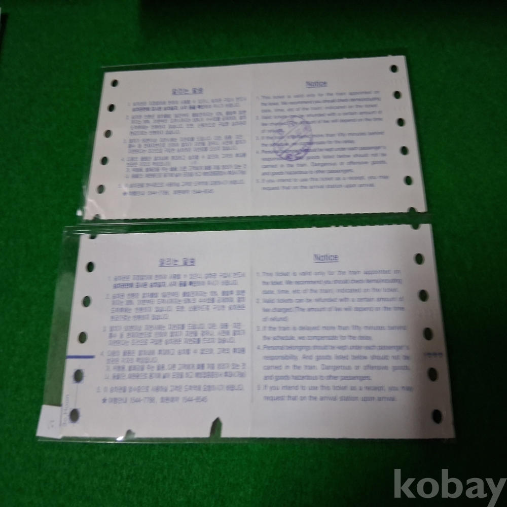 한국철도 특별용지 승차권 2매