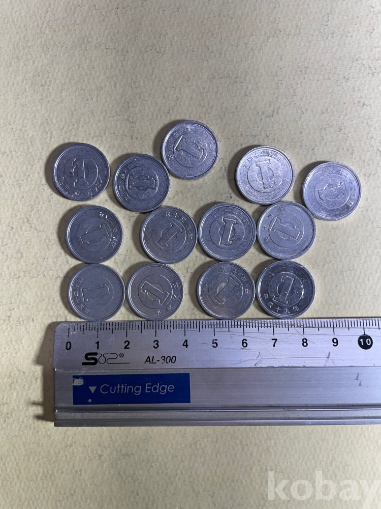 1955년~89년 발행된 일본 1엔 주화 13개입니다.