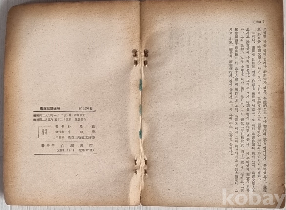 노계가사통해2-박성의 저 1960년중판 백조서점 발행