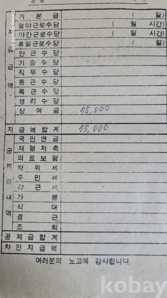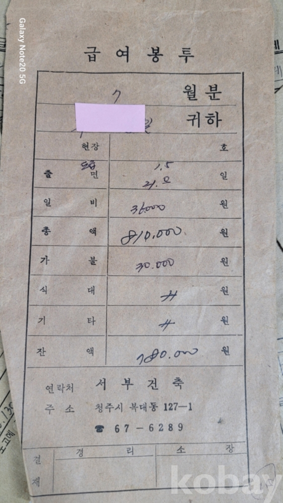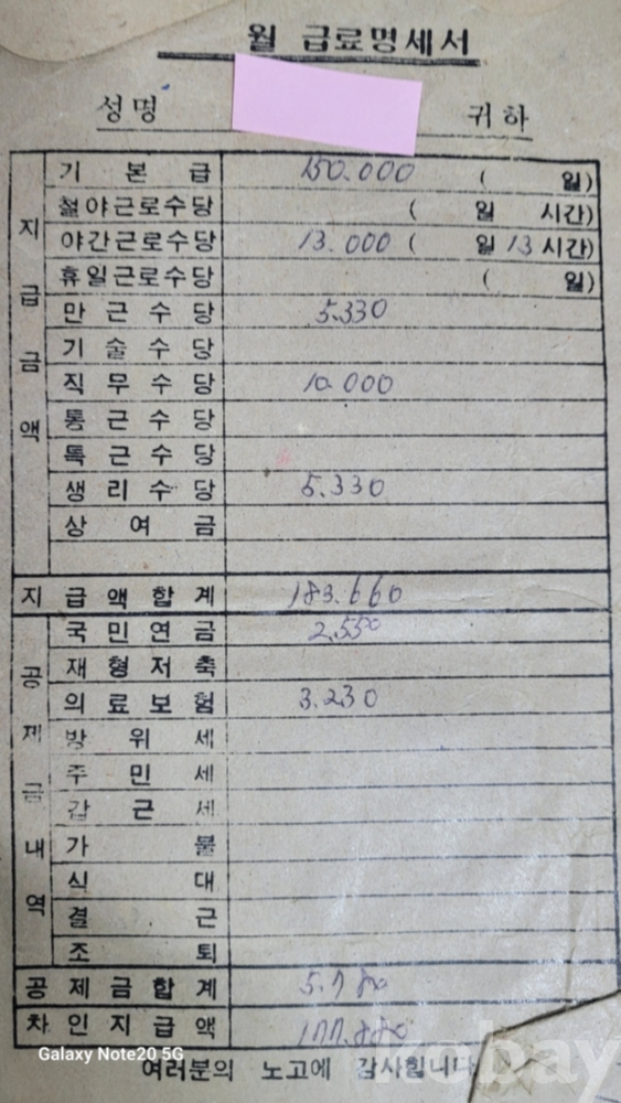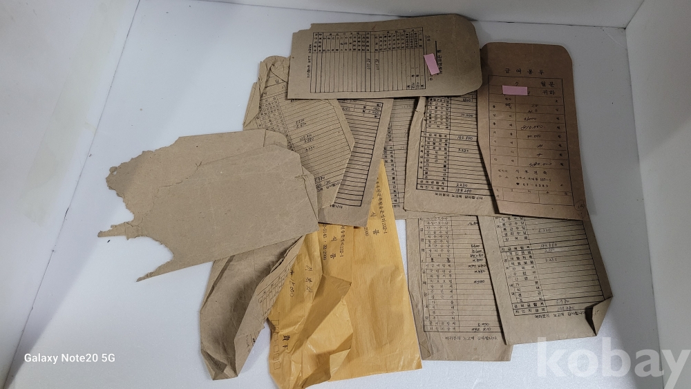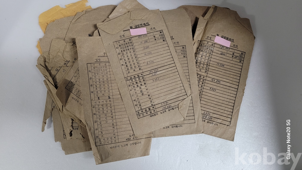 실제 월급봉투 등 생활자료입니다.