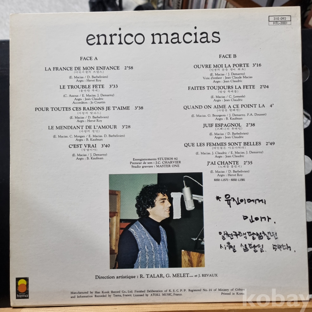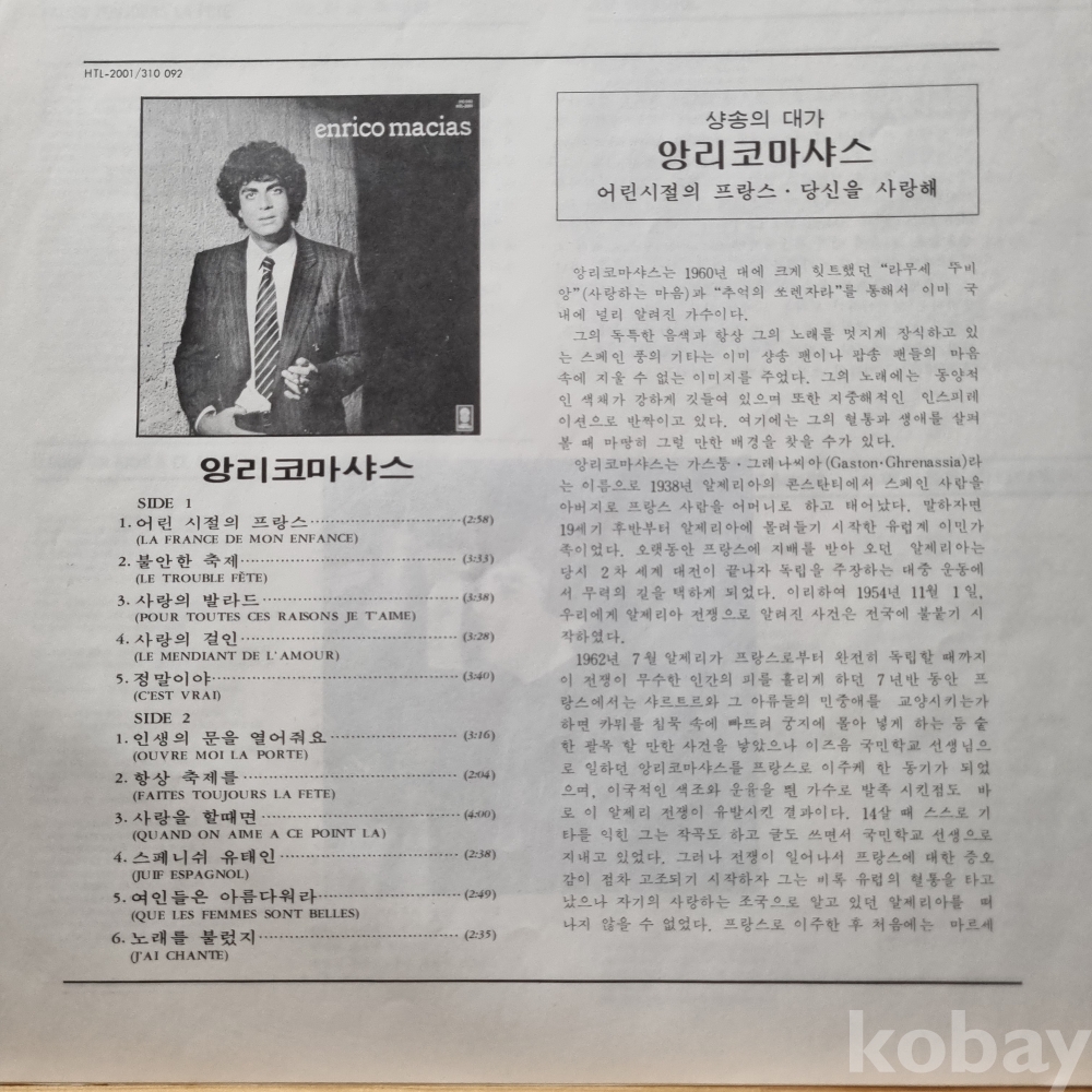 ENRICO MACIAS 한국음반 1982년