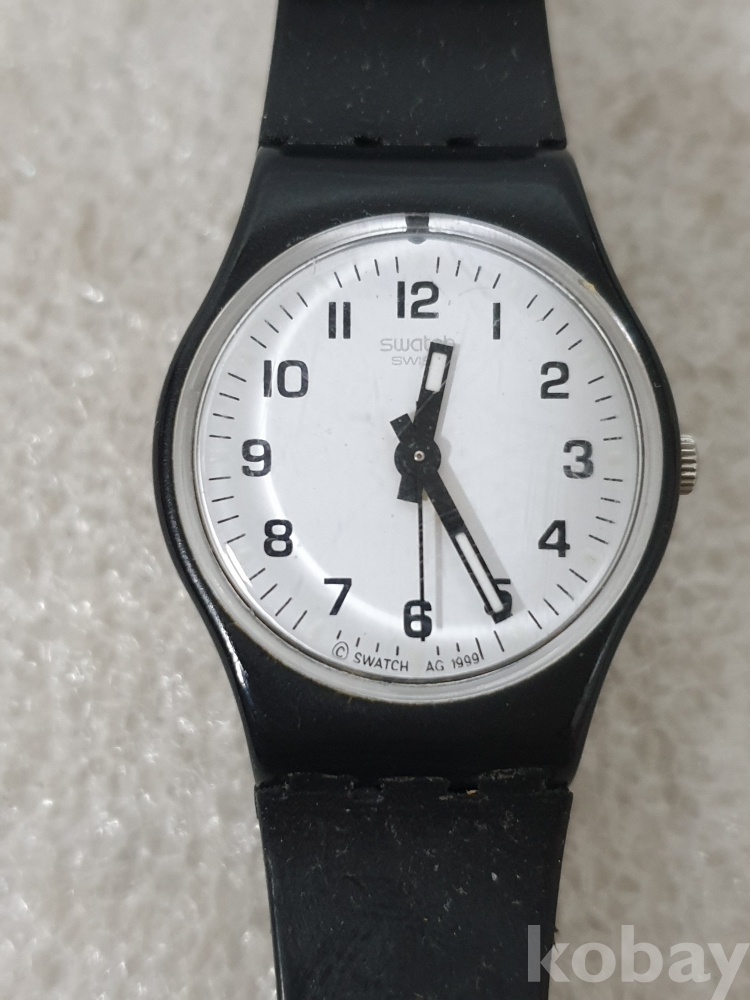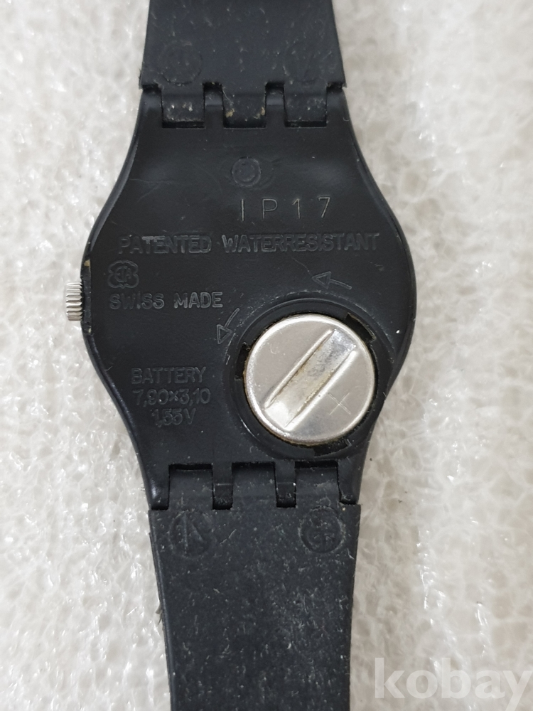 {천원경매} 12-2659 스와치 검정줄 손목시계 (*작동확인불가)