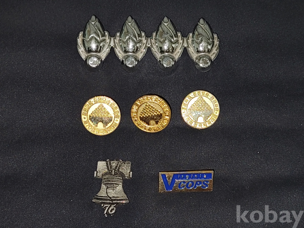 미국 76 자유의 종 뱃지(뒤에 핀이 떨어져 있는 상태), 버지니아 경찰 기념 뱃지(뒤에 고정하는 것 없음) 등 6개 일괄입니다.