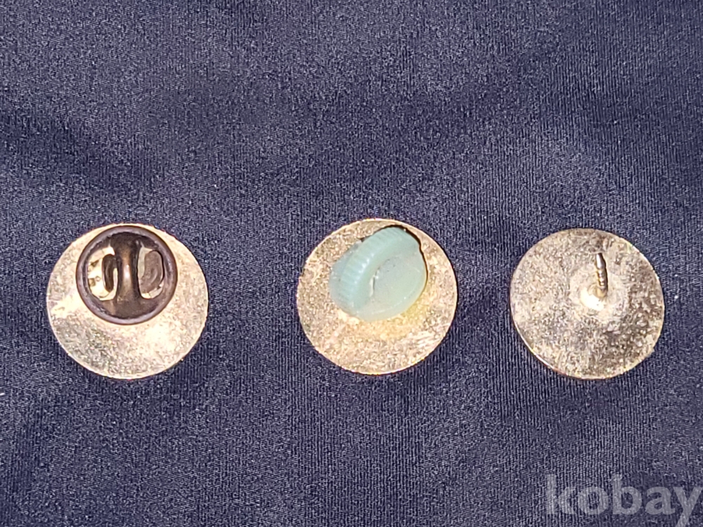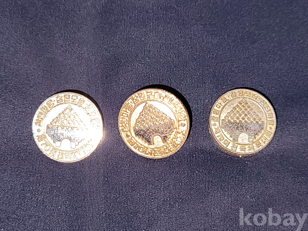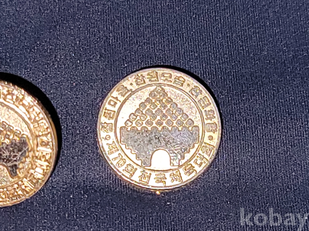 경찰 경사 계급장(뒤편 핀 한쪽에 핀 휨, 고정 뚜껑 없음), 1989년 전국체전 뱃지 3개(하나가 뒤에 고정하는 게 없음)