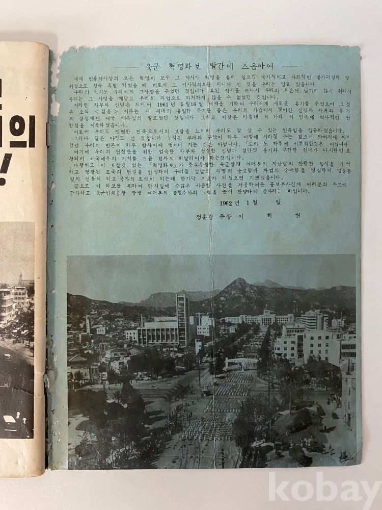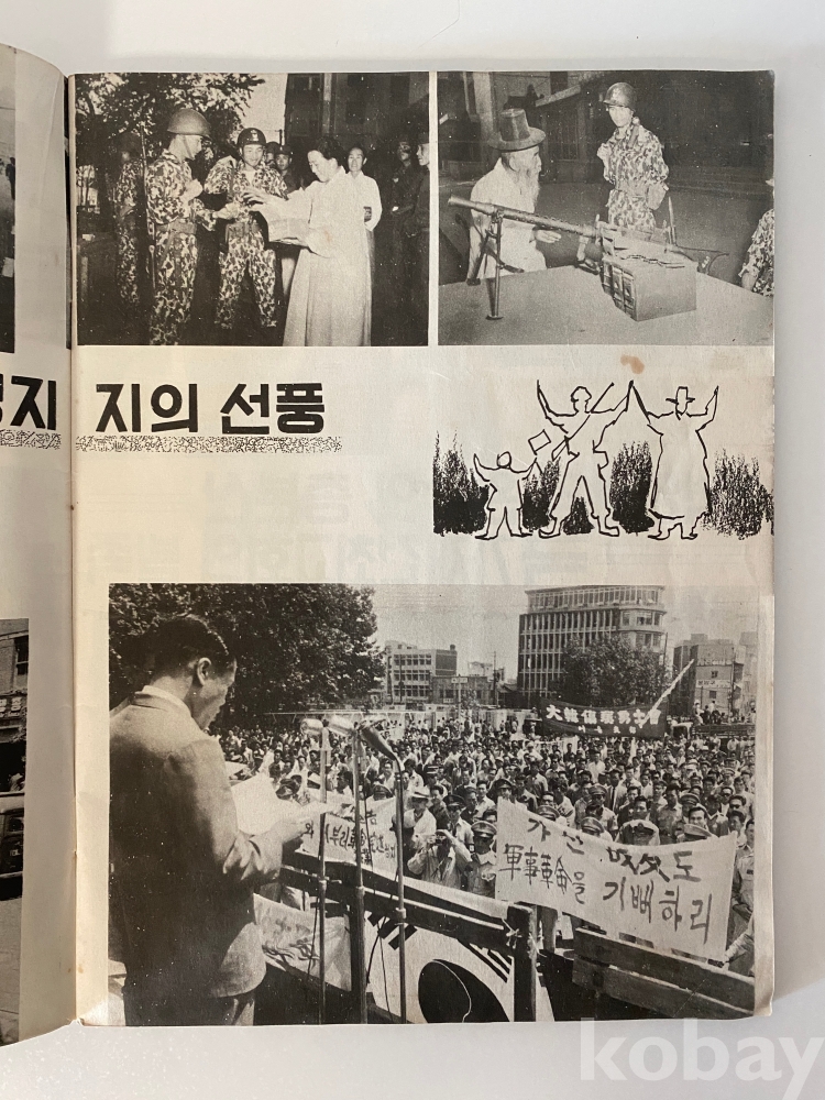 5.16 직후 군부가 어떻게 대내외적으로 자신들을 홍보했는지 보여주는 교과서적인 선전물입니다. 특히 '혁명화보'라는 노골적인 타이틀을 단 간행물은