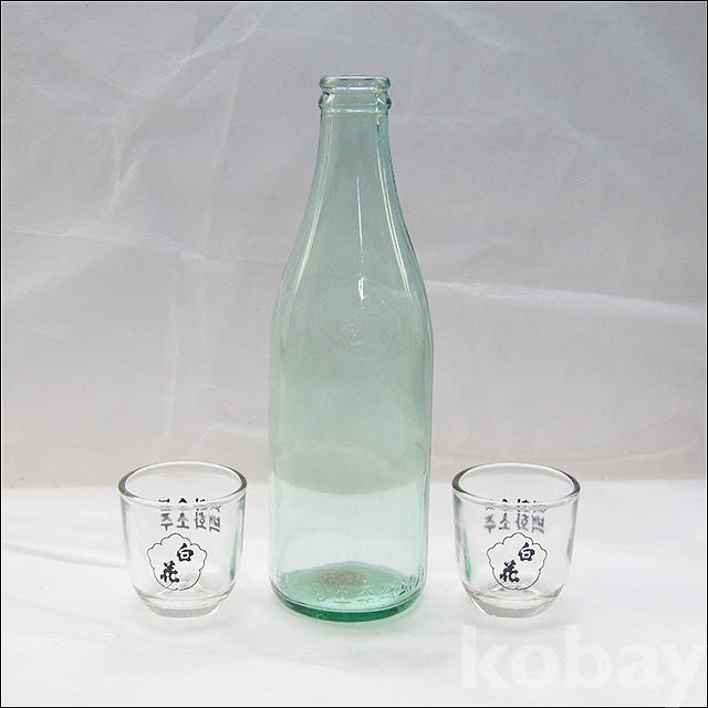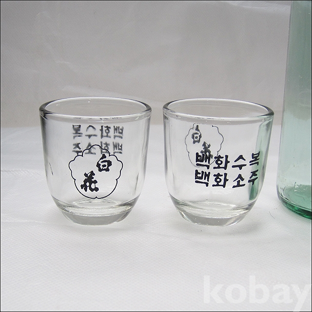 옛날 백화소주 양각 로고 2홉 소주병 + 백화 소주잔 2개 (1007)