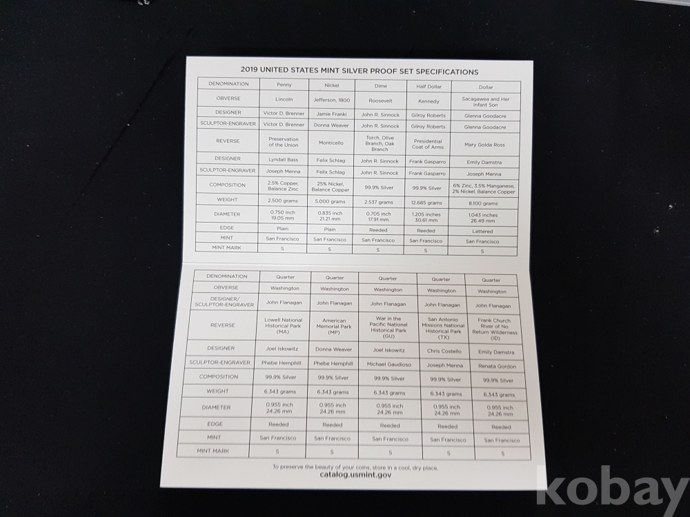 - 은화/ 미국 2019년 민트 은화 프루프 세트 10종 모음