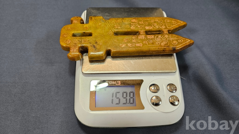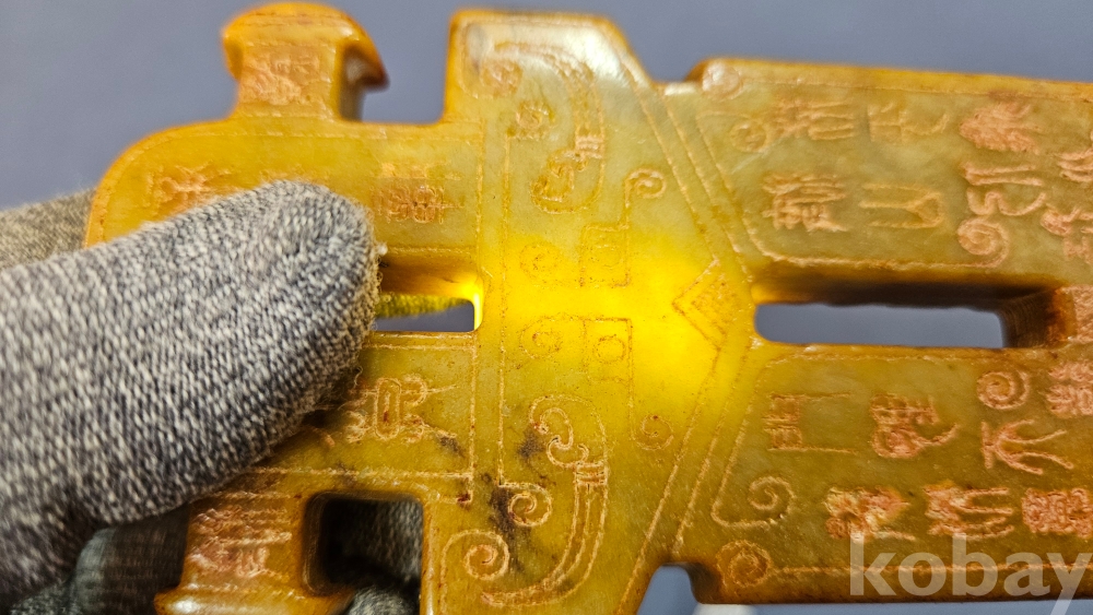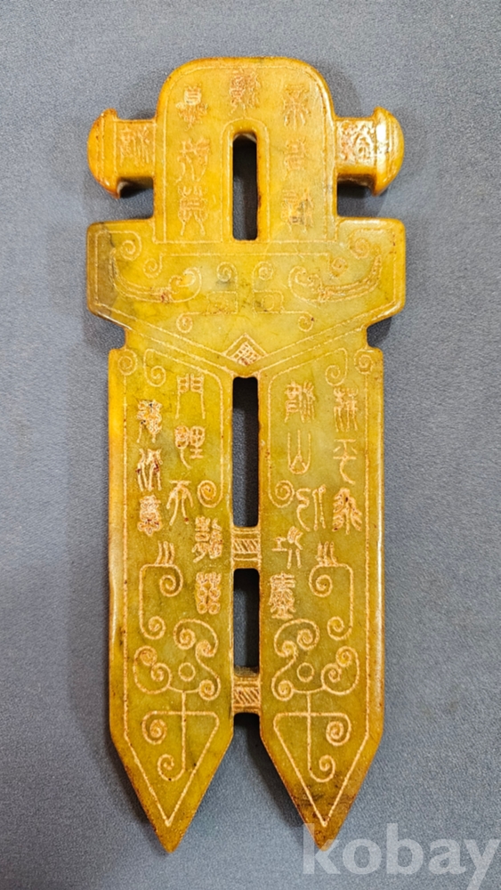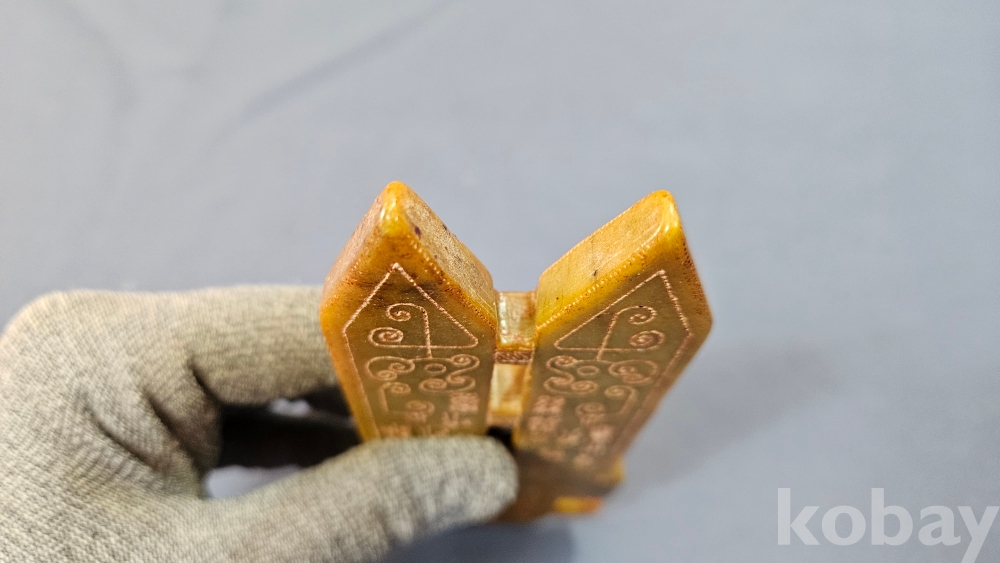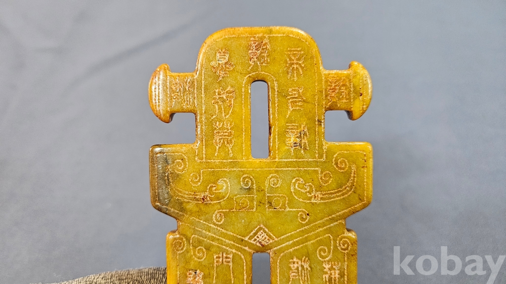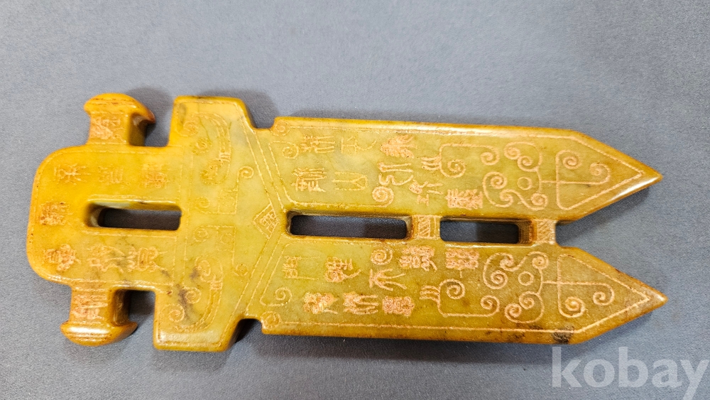 앞뒤로 특이한 문양이 새겨져있는 옥돌재질의