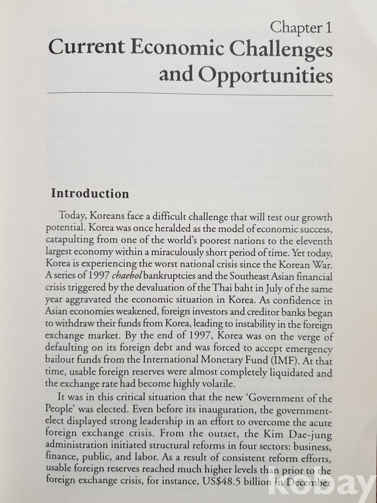 설명: 대한민국 이코노믹스에서 발행한 김대중 대통령 영문판 경제 서적입니다
