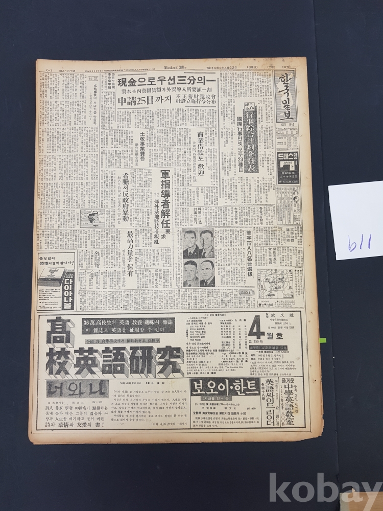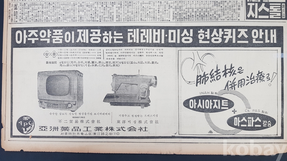 **** 1962.04.22(한국일보)/아주약품공업주식회사 테레비·미싱 현상퀴즈안내 광고포함/약 4면