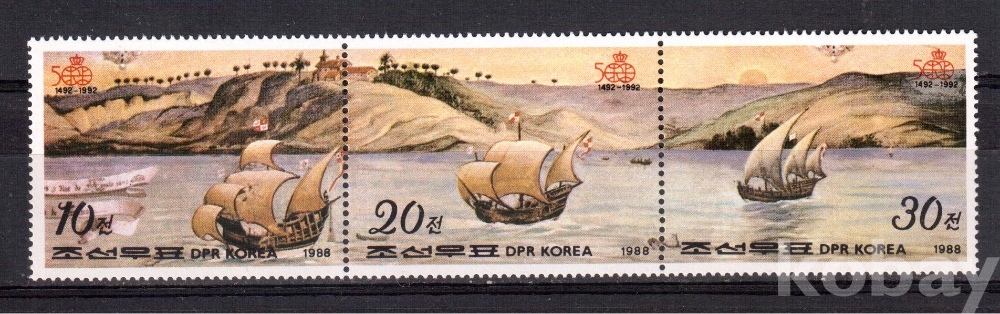 (선박) 북한 1988.3.10 콜롬부스의 아메리카대륙발견 500돐 Se-tenant of 3 MNH