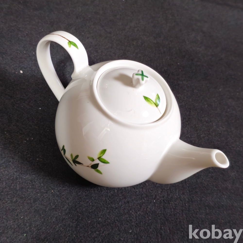 (((근현대사자료))) 오래전 나뭇잎문양이 이쁜 도자기 茶 주전자 (한국도자기 純)