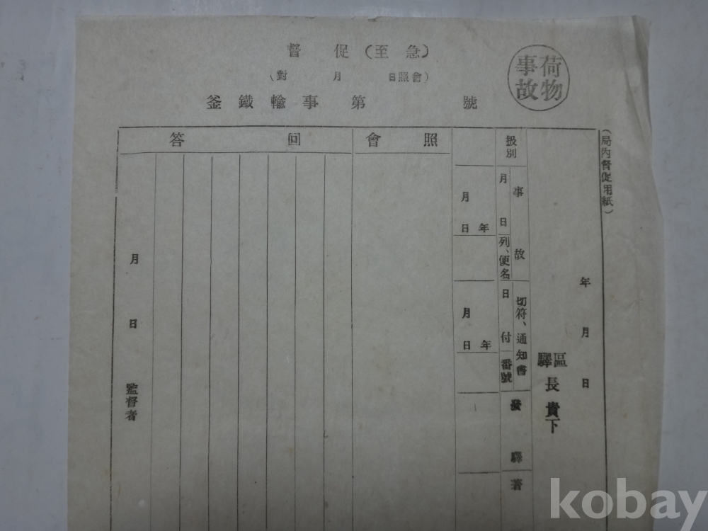 화물사고 - 독촉 양식 (부철수..역장 귀하, 소송과 사고계)