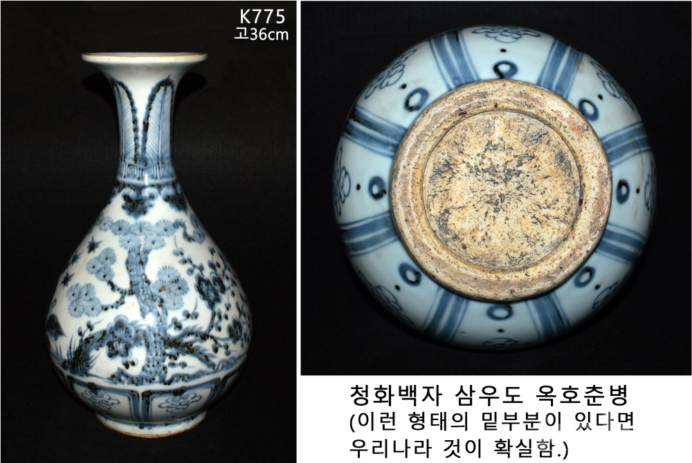 퍼져있고, 표면이 매끈하여도, 청화를 확대해서 보면 오래된 고문물임을