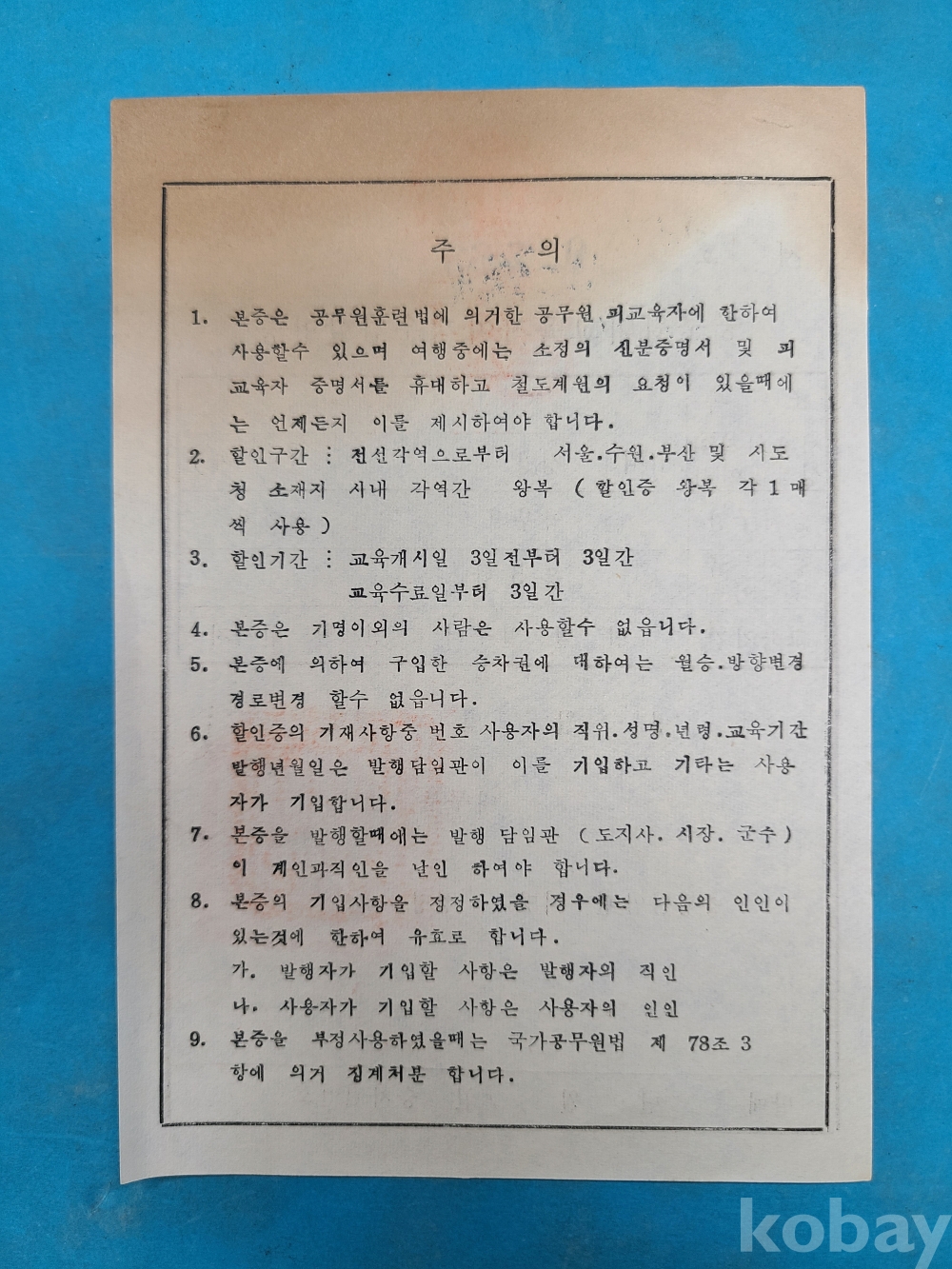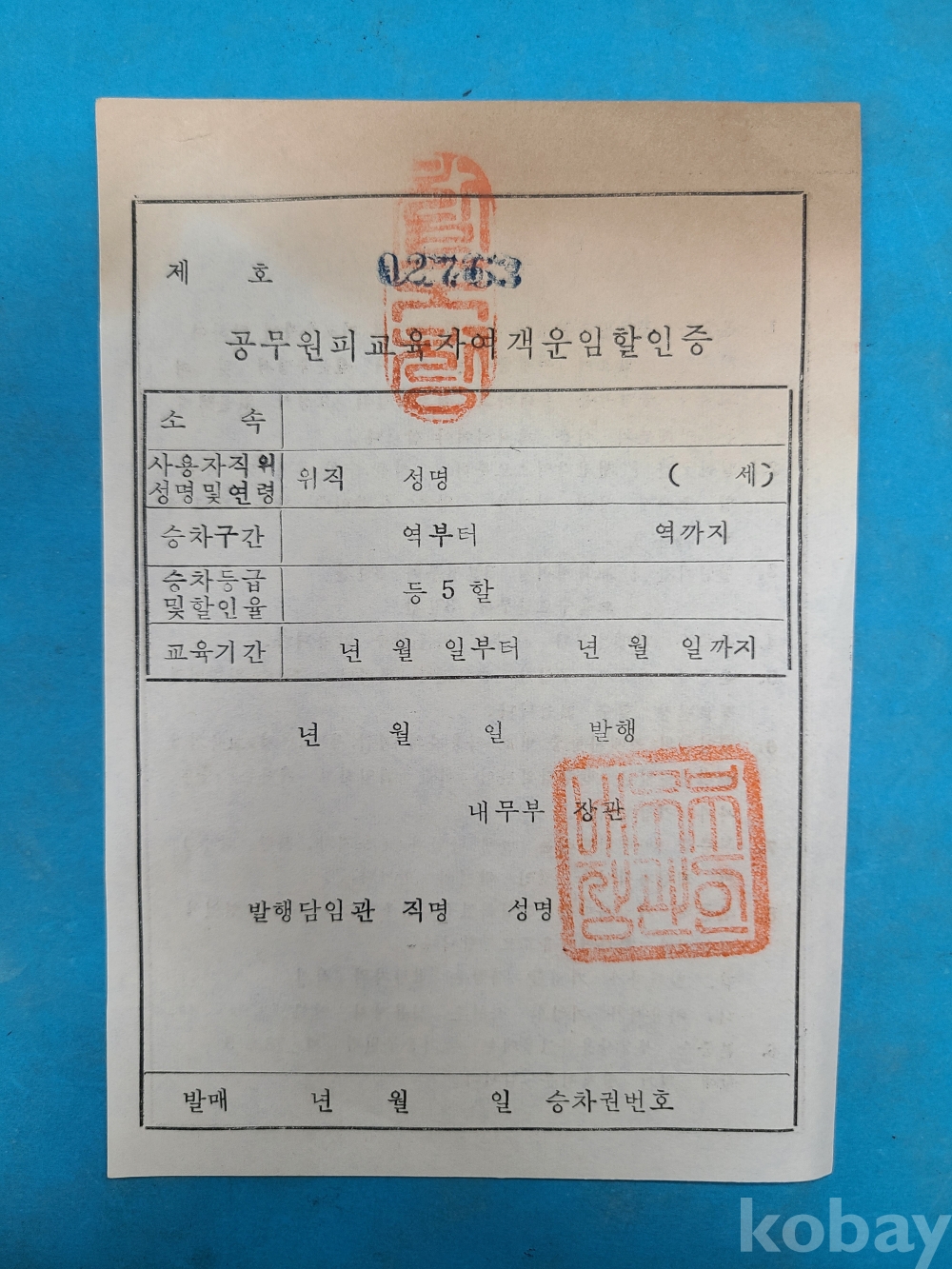 **** 공무원피교육자여객운임할인증/내무부장관
