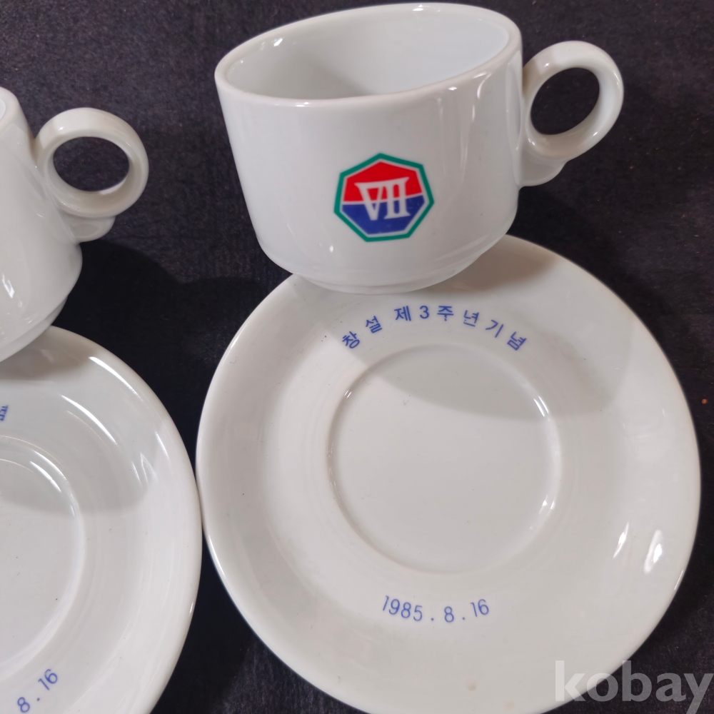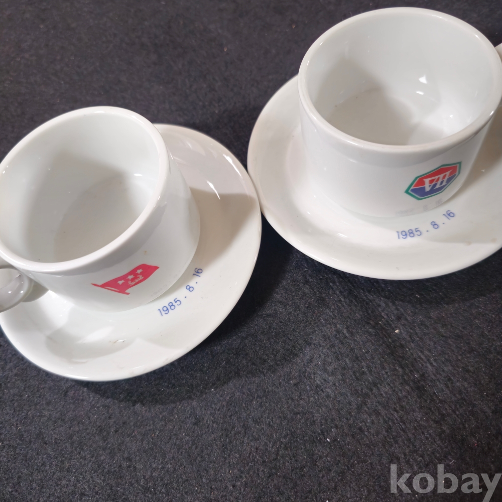 (((군자료))) 1985년 제7군단 창설 제3주년기념 커플 도자기커피잔 & 잔받침 (요업개발)