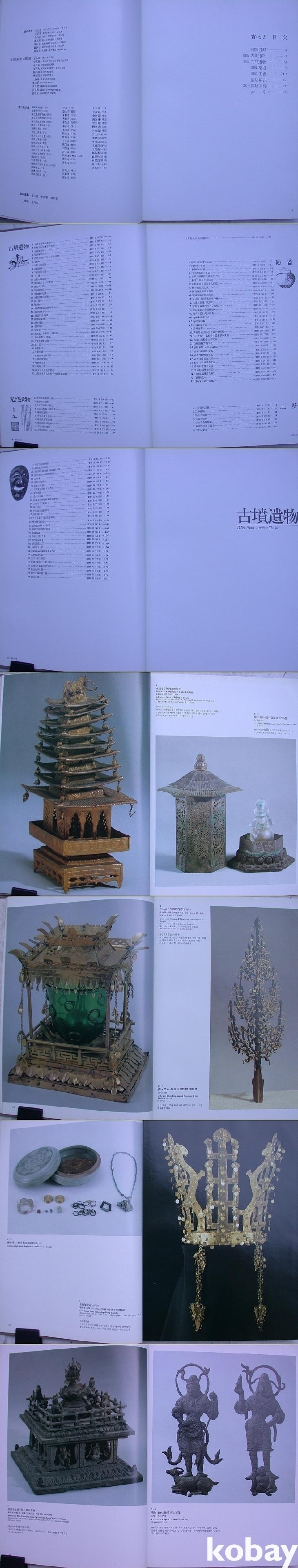 먼저 목록으로 고분유물 37점, 선열유물 10점, 자기 33점, 공예 39점이 실려 있다. 영문으로도 제목을 달았고, 간략한 설명이 있다. 분야별로 뒤에 상세한 <도판해설>과 <영문목록> 및 <색인>이 있다.