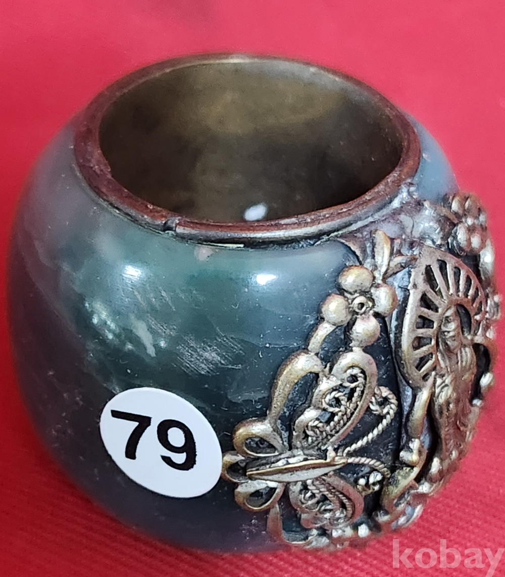 청옥(靑玉)에 백동 수(壽 ) 나비와 꽃문양 대왕급으로 큰 반지입니다,