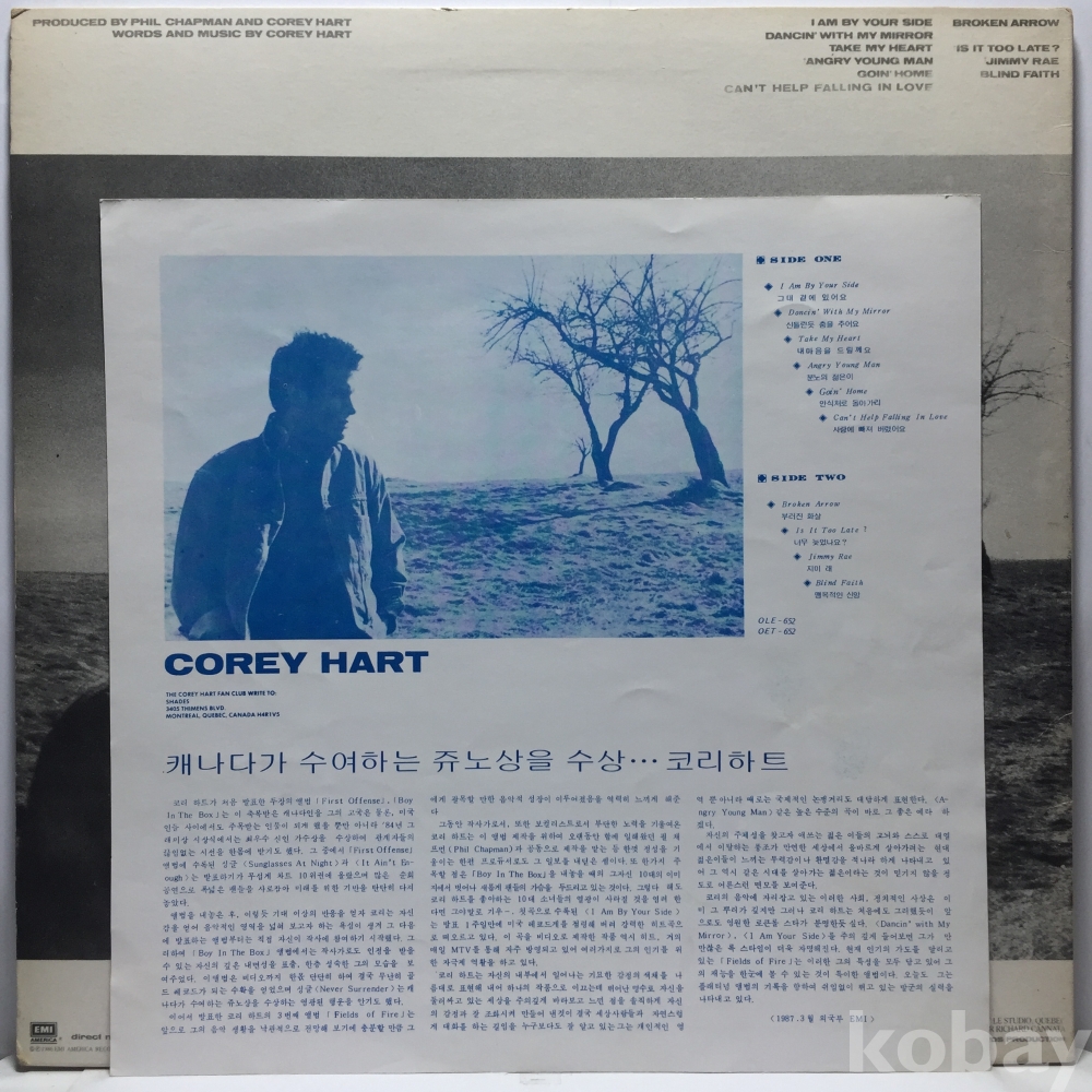 LP 810,700-7 Corey Hart - Fields Of Fire 자켓 EX 알판 EX 86 년 국내반