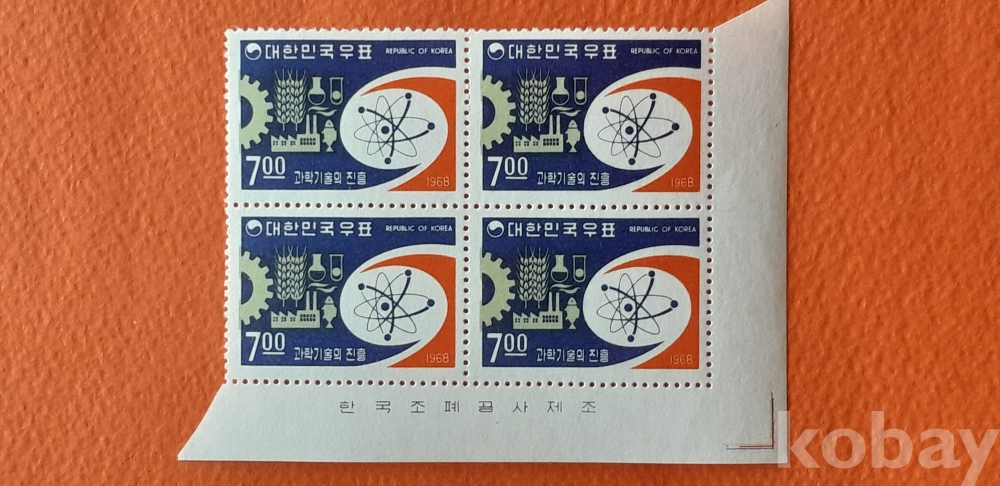 1968년 과학기술의 진흥 기념 4매 명판 입니다.
