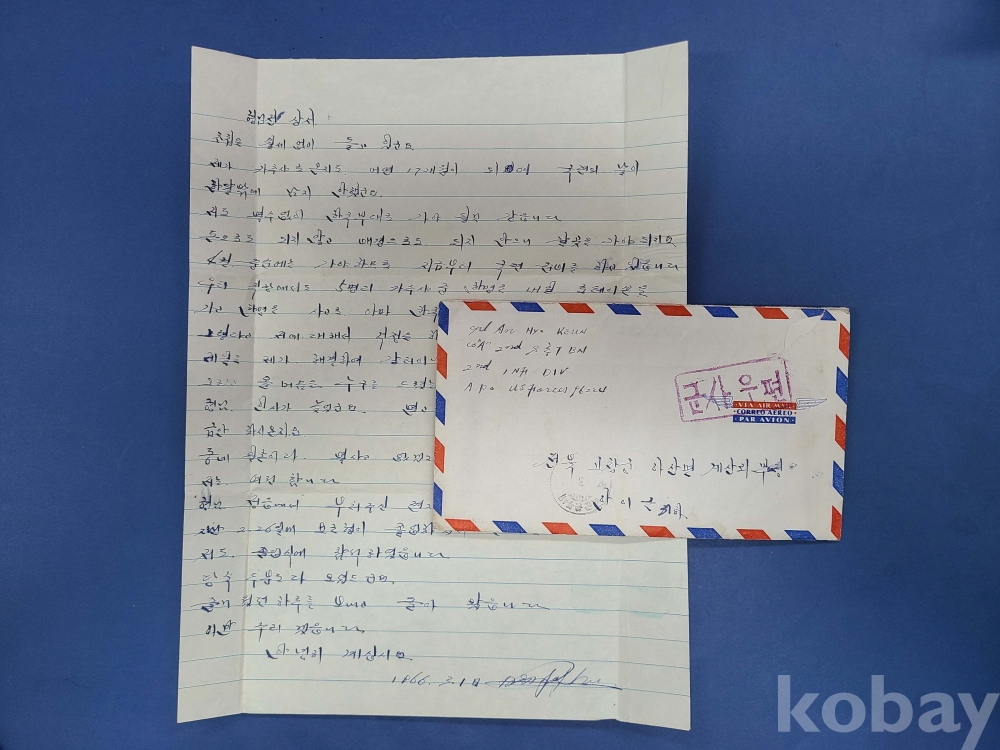 1966년 주한미제8군에 배속된 카투사 군사우편 실체봉투(편지글)