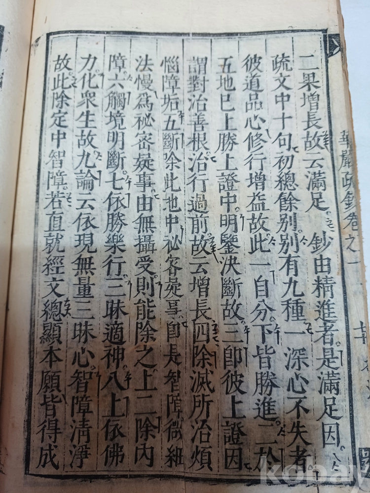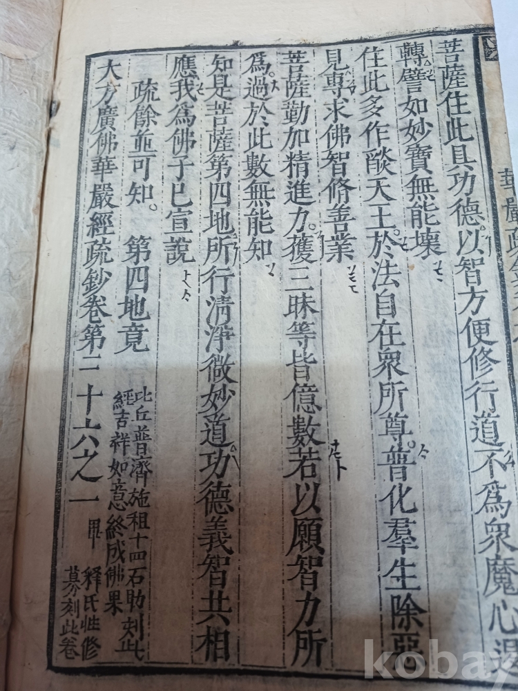 상태a급 계선 양쪽으로 시주자의 호나 성명이 수록되 다른 화엄경에 비해 좀귀하지않나생각됨니다 어미에 號짜가 들어있는것도 특이함니다