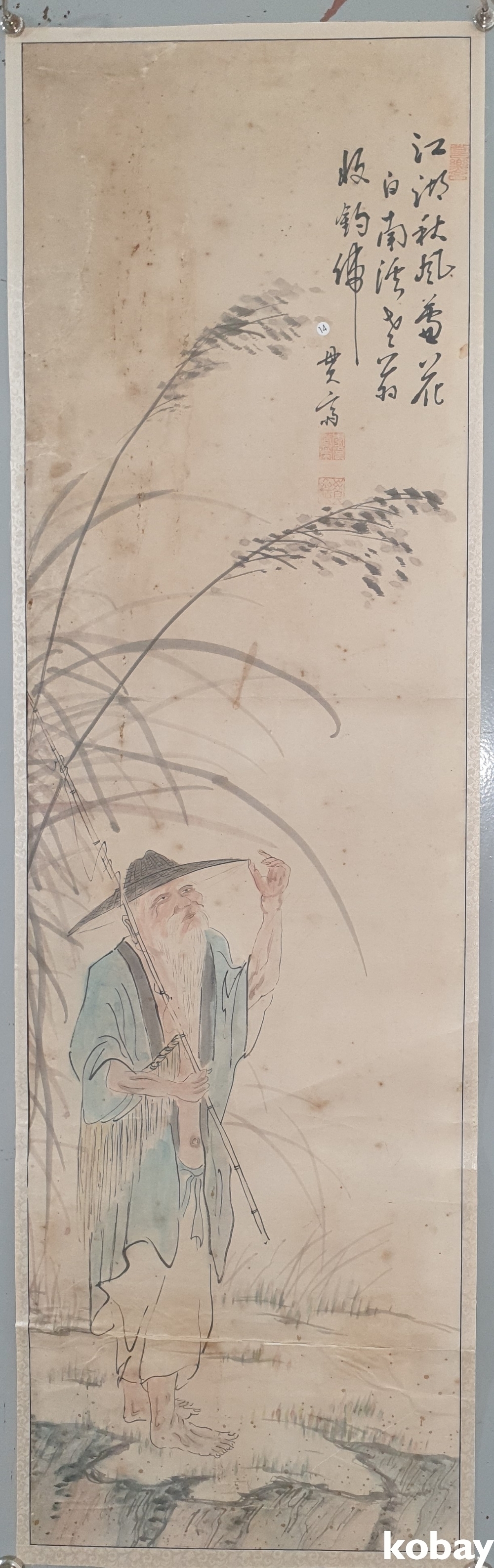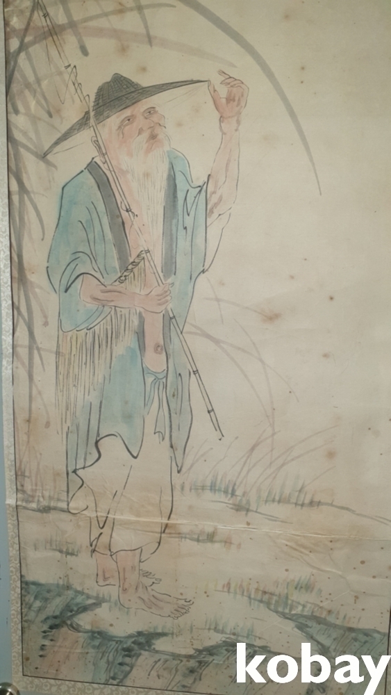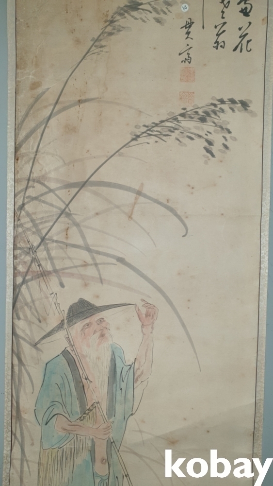 유명화가 관제 이도영(貫齋 李道榮 ) 수결과 낙관이 보이는 종이에 채색된 인물화입니다,