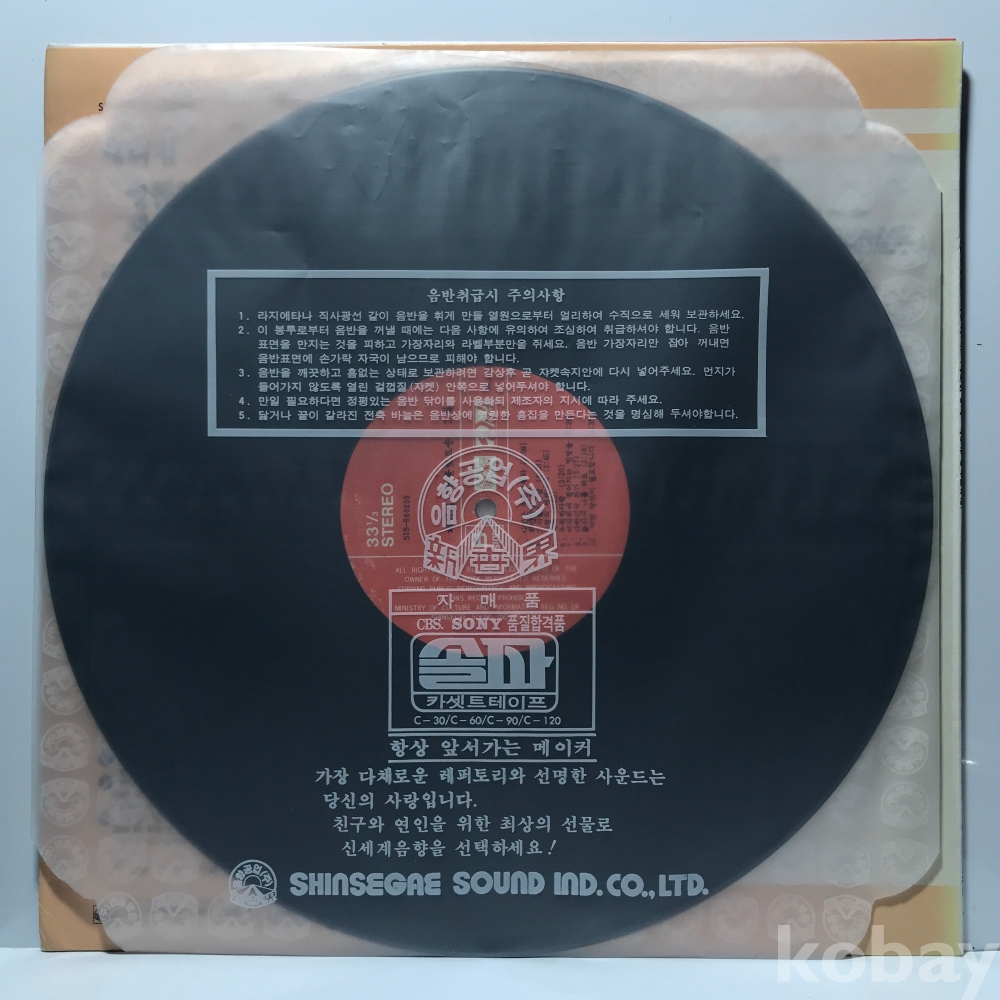 | 자켓상태 | EX : 약간의 마모, 모서리 찢김 존재 | 음반상태 | EX : 재생에 영향 없는 가벼운 기스 존재 | 발매정보 | 알수없음 | 가사지여부 | 무 |