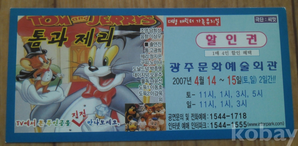 2007년 뮤지컬 톰과 제리 공연 할인권