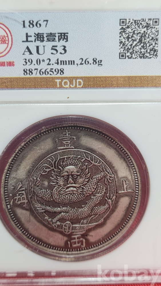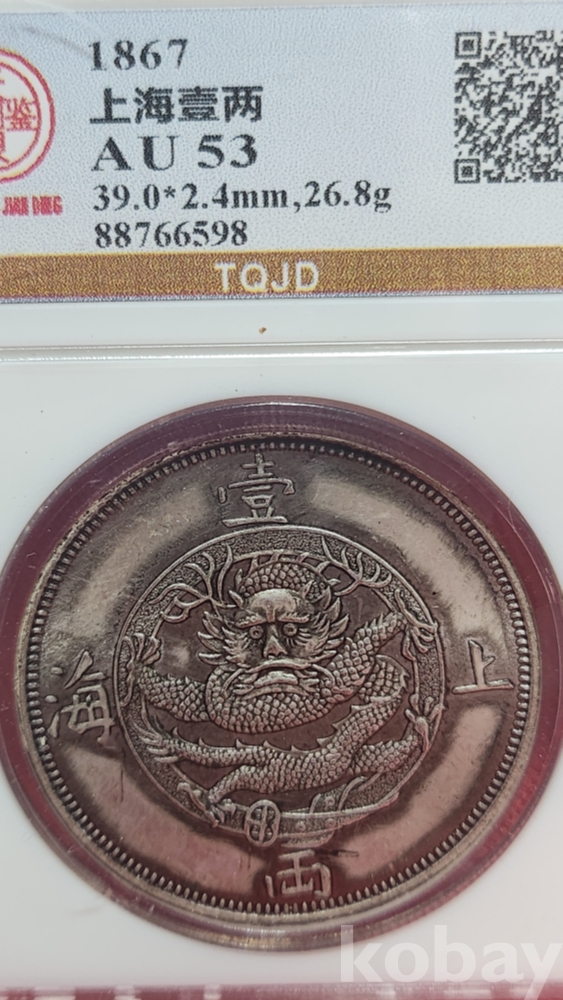 1867 년 큐알코드(QR CODE)가 함께하는 은색 상해일량 화패로 밀봉된 상태입니다,