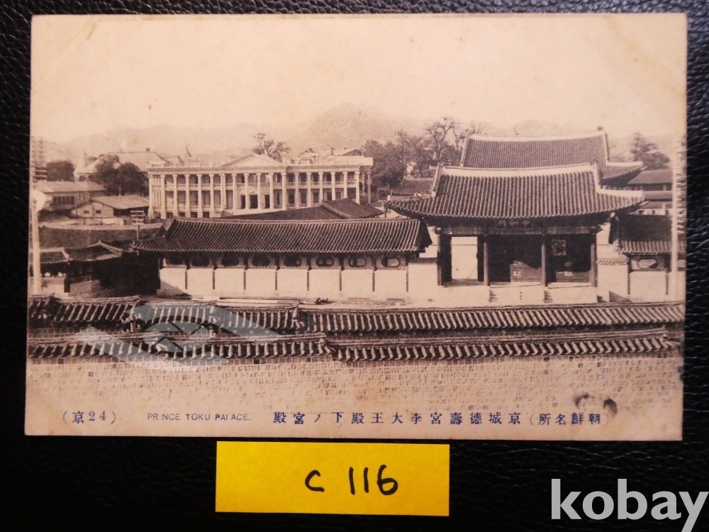 ▣근대한국엽서(진본): 경성, 덕수궁 이대왕전하(고종황제)의 궁전, 안쪽에 석조전이 보임, 희귀/1매/역사자료,일제시대,일제강점기 사진엽서, 그림엽서, 회엽서. C116