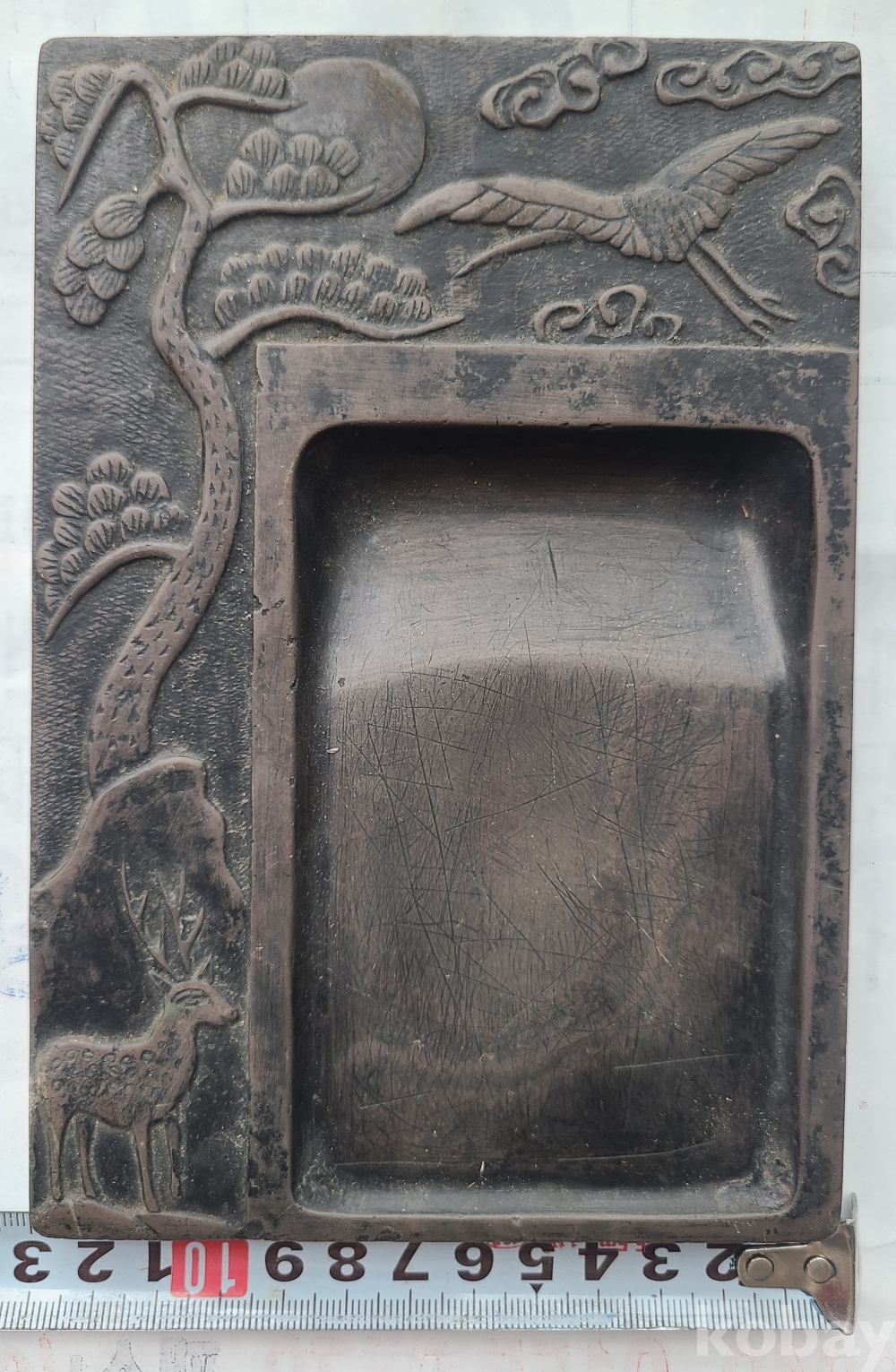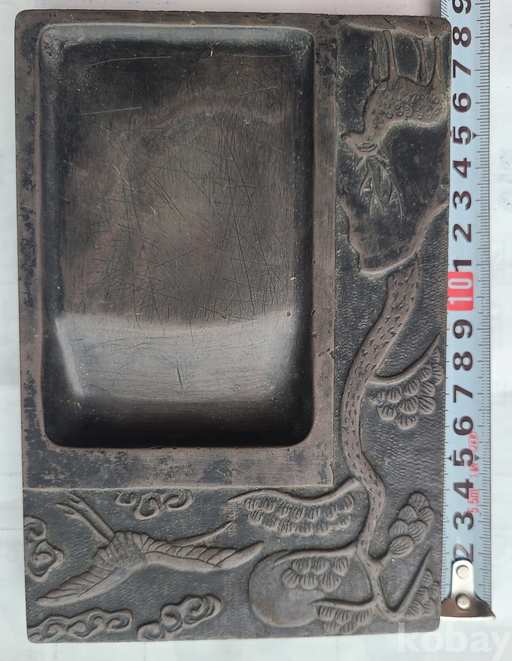 용, 학, 구름, 소나무 등의 십장생 도안은 장수를 기원하는 의미로, 조선 후기 또는 대한제국 시기의 문방 벼루로 수집적 가치가 높습니다.