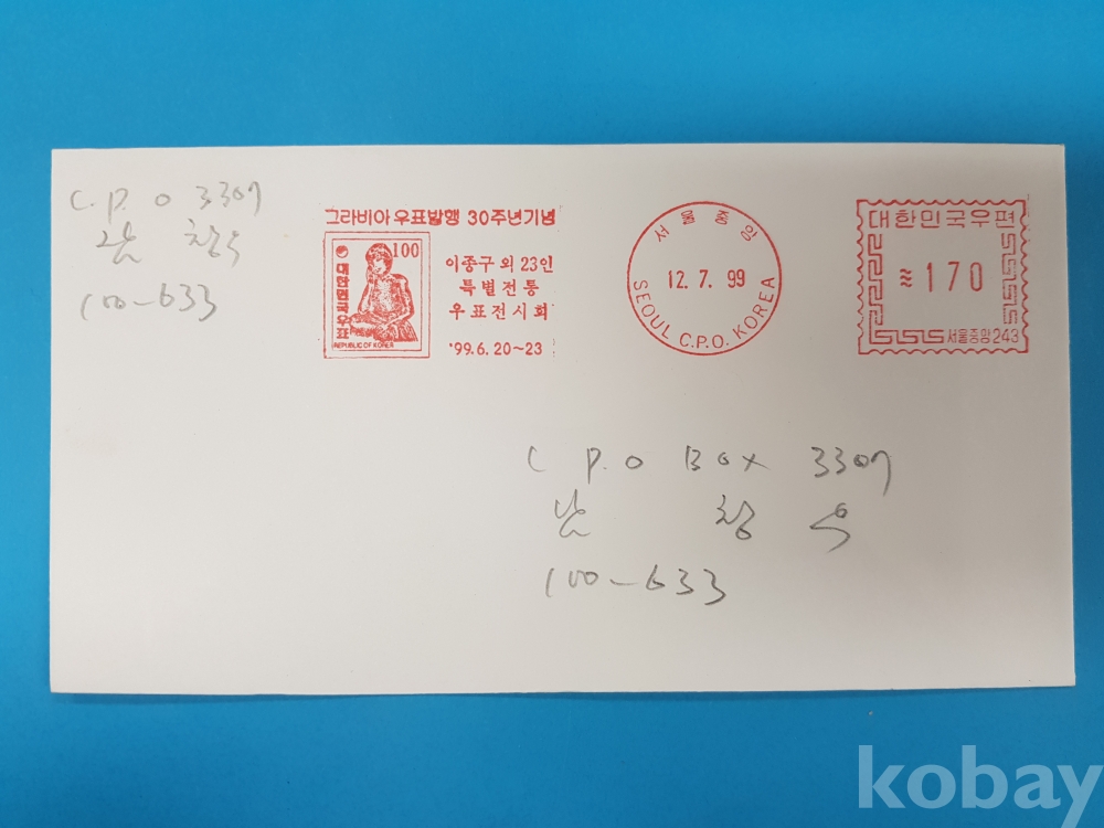 [미터스탬프] 그라비아 우표발행 30주년기념 이종구 외 23인 특별전통 우표전시회,99.12.7