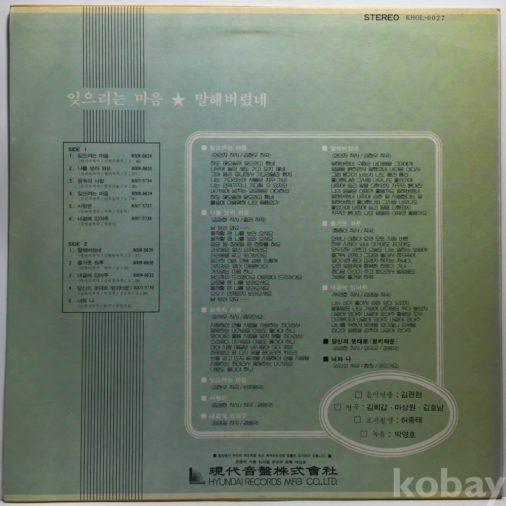 EX : 약간의 마모, 모서리 찢김 존재 음반상태