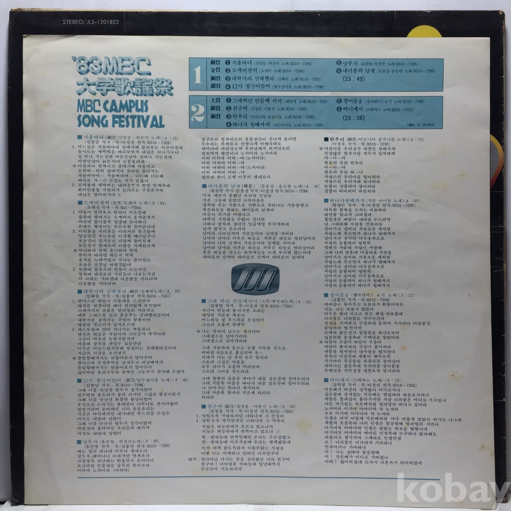 LP 82,500-14 83 MBC 대학가요제 자켓 EX 알판 EX 83 년 국내반