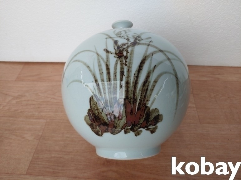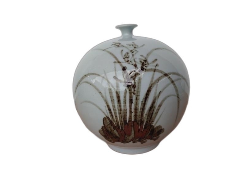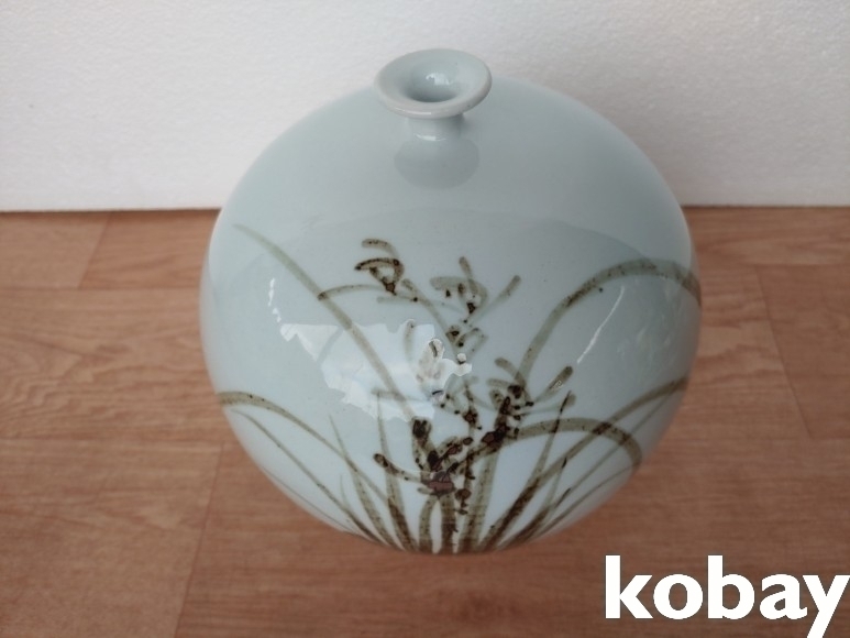 난초 문양 입이 작은 도자기 입니다.