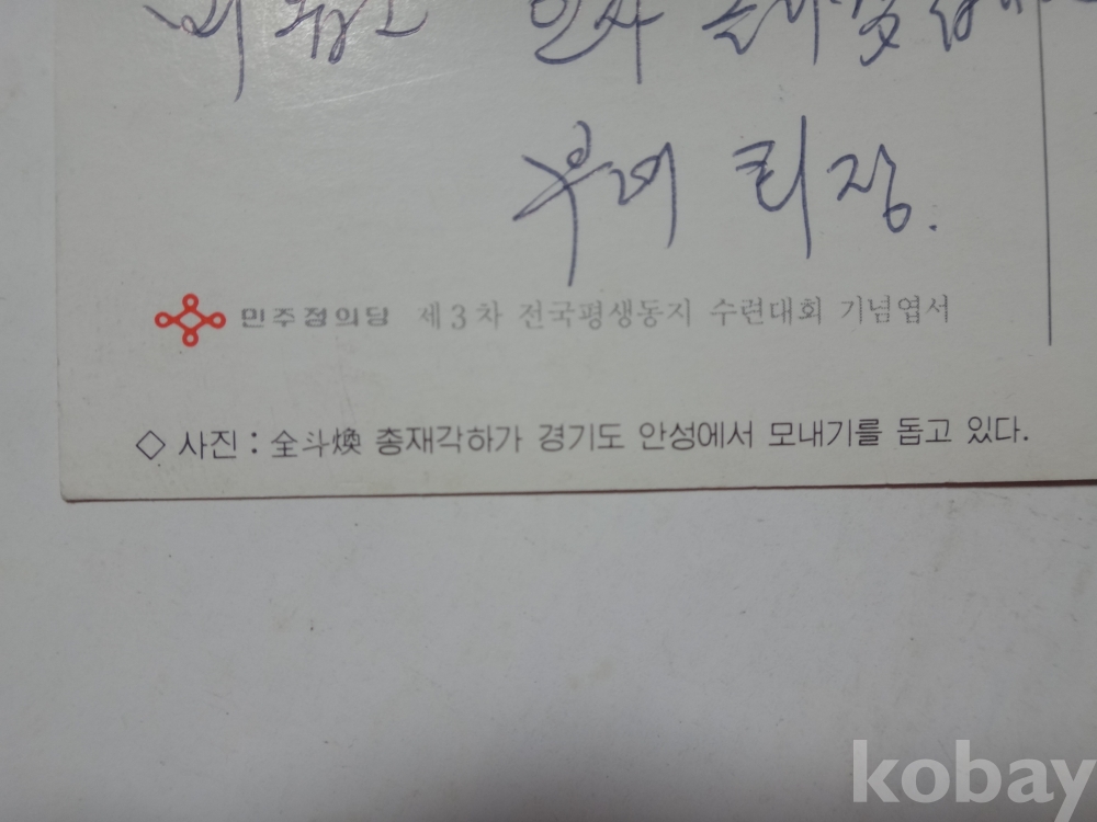 전두환 총재각하가 경기도 안성에서 모내기를 돕고있다 - 민주정의당 전국평생동지 수련대회 기념엽서 (..덕유산에서)