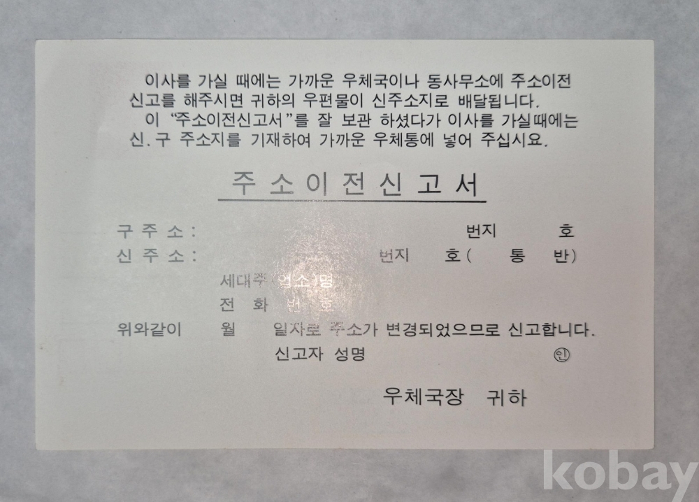 2000년에 사용된 주소 이전 신고서 입니다.